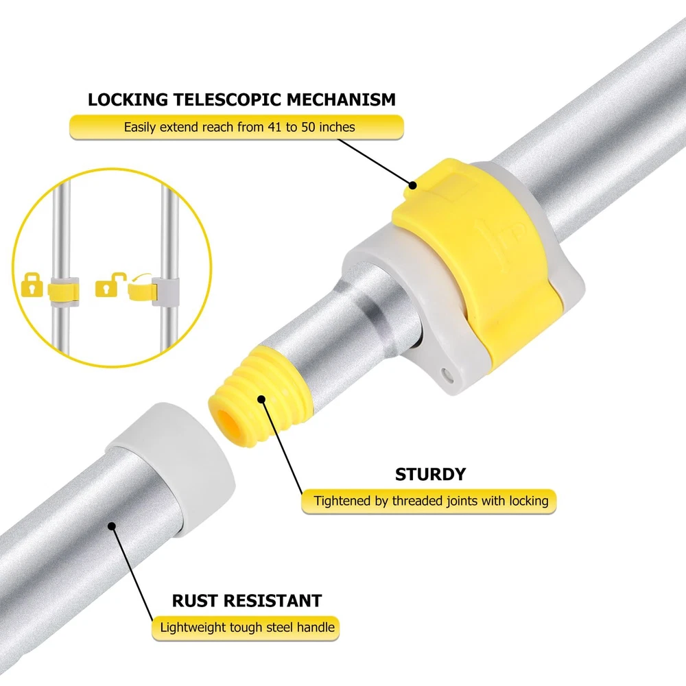 Lalafancy Shower Cleaning Brush with Locking Head, 3 in 1 Tub Tile Scrubber Brush with 50'' Extendable Long Handle Stiff Bristles Scouring Pads Microfiber for Cleaning Bathtub Shower Wall Bathroom 【Head Locking Mechanism 】 Upgrade heads not only can be swiveled, but also can be loked in place between 0°-180° to avoid flopping around while cleaning, which is ergonomic and meets to clean from different angles. 【3 in 1 Detachable Brush Scouring Pad Microfiber Head】 You will get 3 x pole parts,1 x brush head, 1 x scouring pad and 1 x microfiber cloth. The stiff bristle brush is suitable for cleaning stubborn dirt. Use a scouring pad to clean glass, doors and other smooth surfaces. 【50’’ Adjustment Long Handle】The bathtub scrubber with long handle extends from 31.5’’ to 50’’ with a quick twist. Release your back, no more bending, stretching, kneeling or crouching to reaches from the floor of the tub to the ceiling height. 【Triangular Head Pivot】Replaceable tapered edges bathtub scrubber cleaner head pivots fit into corners, recesses and grout lines, clean range without dead angle. Great for easier cleaning bathroom, bathtubs, tiles, walls, sinks and even floors. 【Lightweight Non-slip Handle】The extendable pole is made of sturdy iron, it is not easy to bend, break and rust in using. The EVA padded handle has a good touch. easy to hold even when wet. It also has a hook wheee you can hook it to a wall. Keeping your clutter to a minimum. Shipping We offer FREE shipping on all orders! We ship within Three business days of payment, usually sooner. We use a selection of shipping services such as UPS, FedEx, USPS etc. We only ship to the lower 48 states, no APO/FPO addresses or PO Boxes allowed. Local pickups and combined shipping options are not provided at this time. Return You can return a product for up to 30 days from the date you purchased it. Any product you return must be in the same condition you received it and in the original packaging. Please keep the receipt. Payment We accept payment by any of the following methods: PayPal Please pay as soon as possible after winning an auction, as that will allow us to post your item to you sooner! Feedback Customer satisfaction is very important to us. If you have any problem with your order, please contact us and we will do our best to make you satisfied. Contact Us If you have any queries, please contact us via ebay. We usually respond within 24 hours on weekdays. Please visit our eBay store to check out other items for sale! Thank you for shopping at our store.