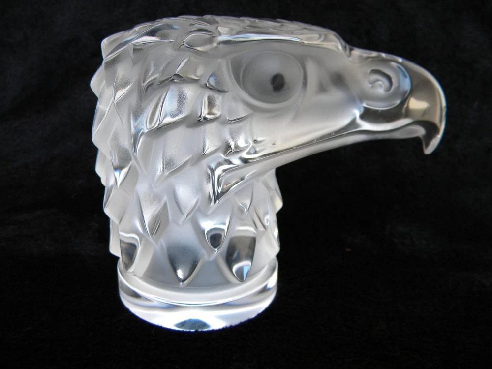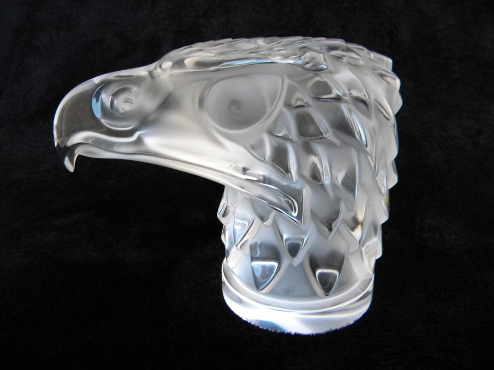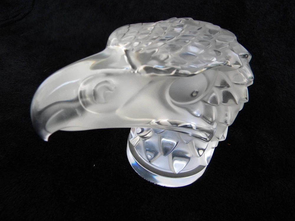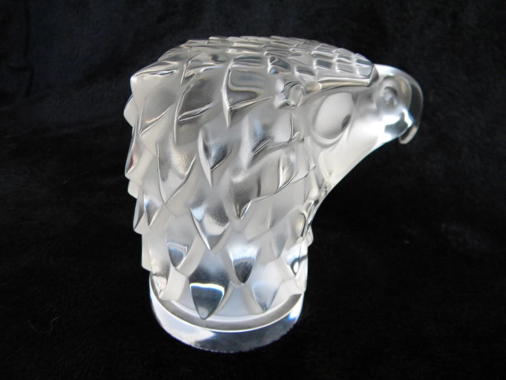 ... Wow! ... Lalique France ... Tete D' Aigle / Eagle's Head ... Automobile Radiator Cap Hood Ornament / Car Mascot ... Art Deco / Art Glass / Clear Crystal ... 1930 - 1939 H. Hoffman Sculpture ... Signed ... 4 3/4" High (12 cm) . 5 1/2" Long (14 cm) ... 3 lbs 2.3 oz ... Great Condition ... Truly Handsome ...