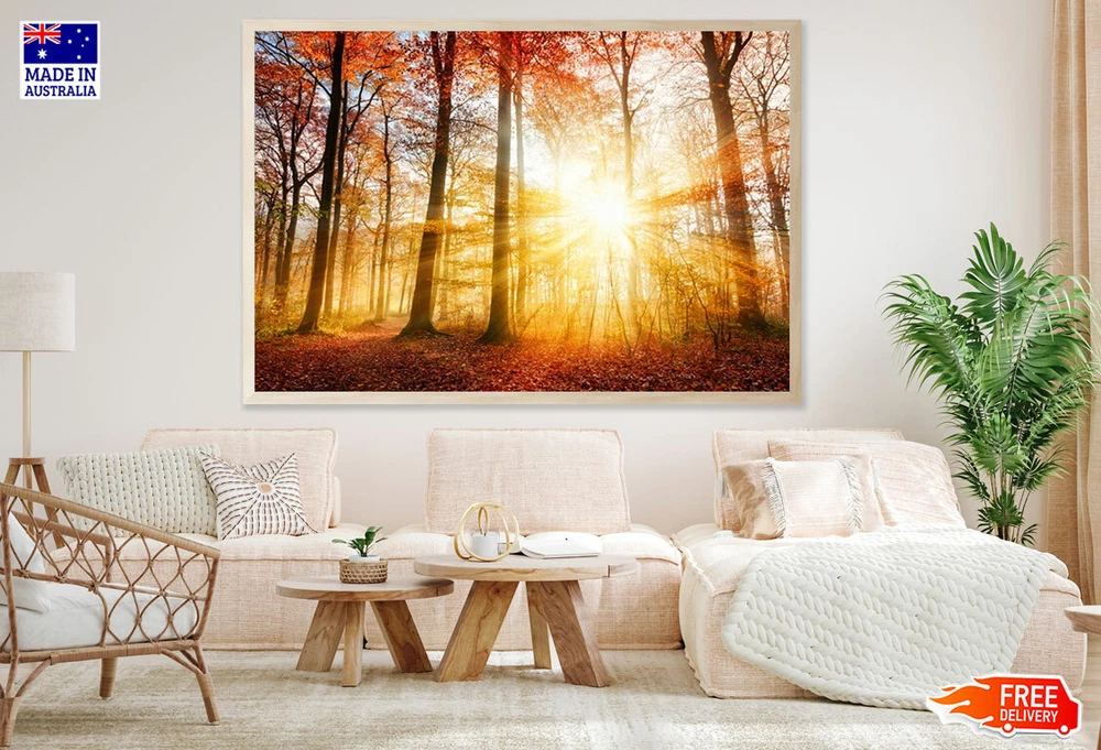 (Laminated) Sunrays In Forest Photograph 91x61cm