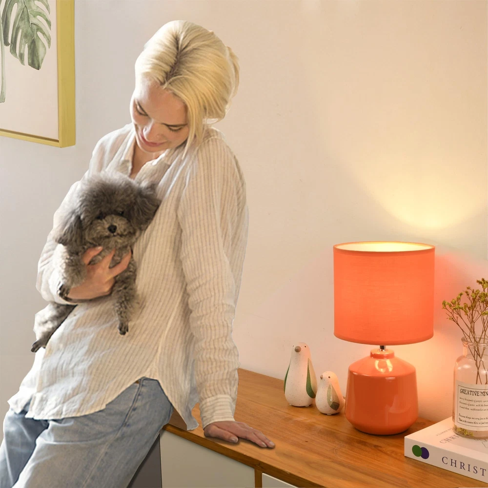 SMALL TABLE LAMP:Φ7.09×H12.99IN.This small table lamp is with handmade ceramic base and fabric lampshade. ORIGINAL DESIGN:This ceramic table lamp is designed by our professional designers.With it's simplicity,shiny finish and popular color,it is perfect as a small table lamp for living room and a bedside table lamp for bedroom.This modern table lamp is also nice as a kids table lamp and a night table lamp. SAFE AND GOOD QUALITY:This small table lamp is with ETL certificate approved by INTERTEK lab.It is very safe for our customers to use this small table lamp in terms of both safety regulations and materials.With continuous strict quality supervision processes,we strive to guarantee that all of our table lamps have good quality. EASY TO INSTALL:Use socket nut to fix the lampshade.Use one E12 Max 40W TYPE G or TYPE B candelabra base bulb(not included). Recommended to use 4W LED bulb. WARRANTY:12 months warranty for manufacturer's defects.If you have any problem,please contact us by email.