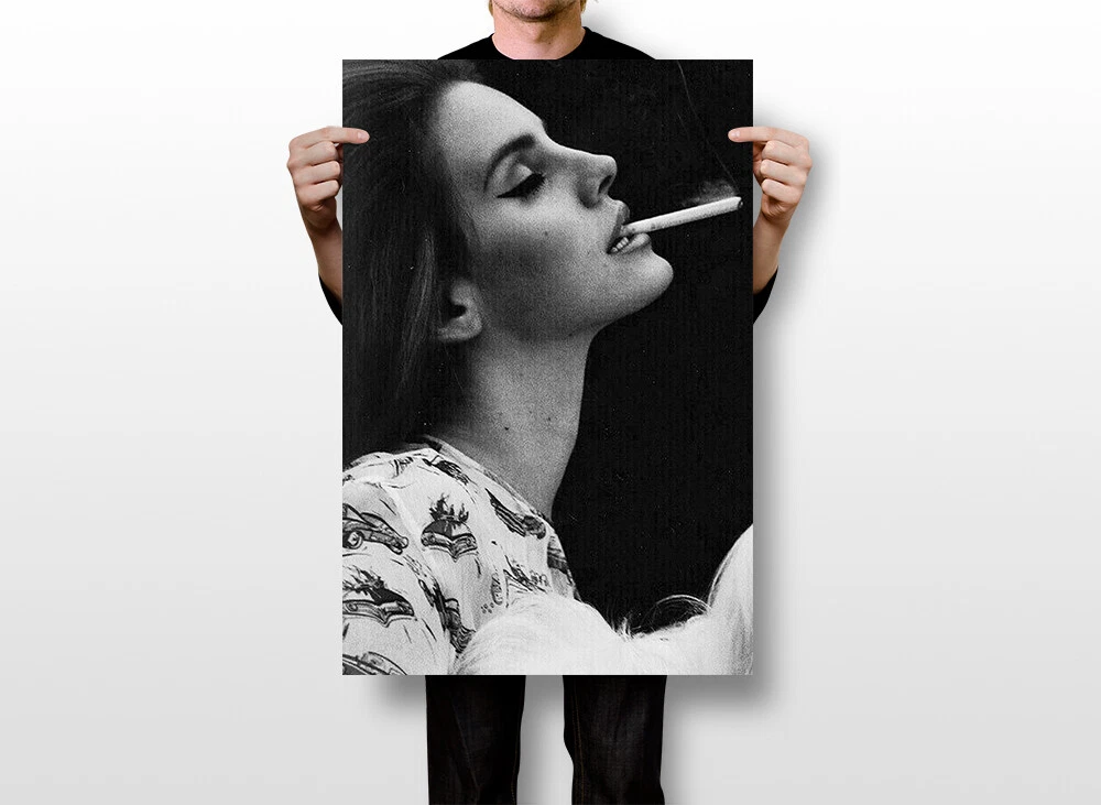 Lana Del Rey Cigarette Print Black And White Wall Art Home Decor - POSTER 20x30 Description 20’’ x 30’’ PREMIUM QUALITY POSTER DESIGNED AND PRINTED IN THE USA! SPECIFICATIONS: Dimensions: 20" x 30" Paper Weight: 200gsm Paper Type: Premium Satin Paper Thickness: 7 mil Finish: Bright White Satin Finish Strength: High Strength Cellulose Paper PVC-FREE Bright White Satin Finish Water-Resistant Ink NOT CHEAP BOND PAPER! Payment Policy Immediate payment is required upon selecting "Buy It Now" or upon checking out through the cart. We only accept payment via U.S. PayPal accounts. PayPal allows you to pay using a major credit card or direct transfer from your bank accounts. Thank you for shopping with us on eBay! Shipping Policy We take great care packaging every item to ensure safe shipment to you. Our standard Economy Shipping is FREE to our customers in the US. Our cut off time is 4PM Eastern Time and our handling time is 2 business days. We will ship your order within 2 business days. Full shipping options is as following: Economy Ground Shipping (5-12 Business Days) – FREE Economy Standard Shipping (3-6 Business Days) - $4.99 for each item. USPS Standard Shipping - First Class Package (3-4 Business Days) - $4.99 for each item. USPS Expedited Shipping - Priority Mail - (1-3 Business Days) $8.99 for each item. Return & Refund Policy We accept returns within 30 days of purchase. We will cover the shipping cost for the returned item if it is our fault. Your refund will be processed as money back to your account unless otherwise specified. For reasons other than the item arriving late, packaging problems or defective item we ask for you to pay return shipping and ship back with original tube.