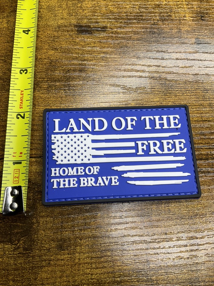 Land Of The Free Home Of The Brave Flag Patch PVC Hook Loop Rubber Patriot Please be aware that we ship all of our patches first class mail, we could have a cheaper price but wouldn’t be able to guarantee delivery. I’m afraid customers have forced us to only use this method. A tracking number is uploaded immediately after purchase, shortly after that the post office receives the package and you will be able to follow it to you eBay registered address.