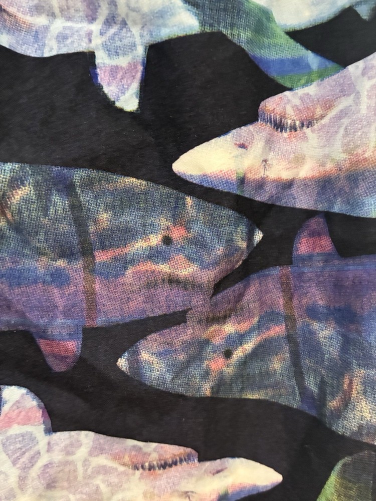 Lands' End Kids Boys Sharks 100% Polyester Adjustable Waist Swim Trunks Blue M 10-12. Condition is pre-owned. Smoke free, pet free home. Shipped via USPS Ground Advantage. In fair condition. The lining has been cut out. Free of rips or stains.