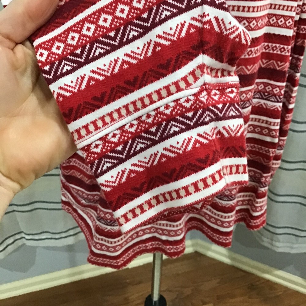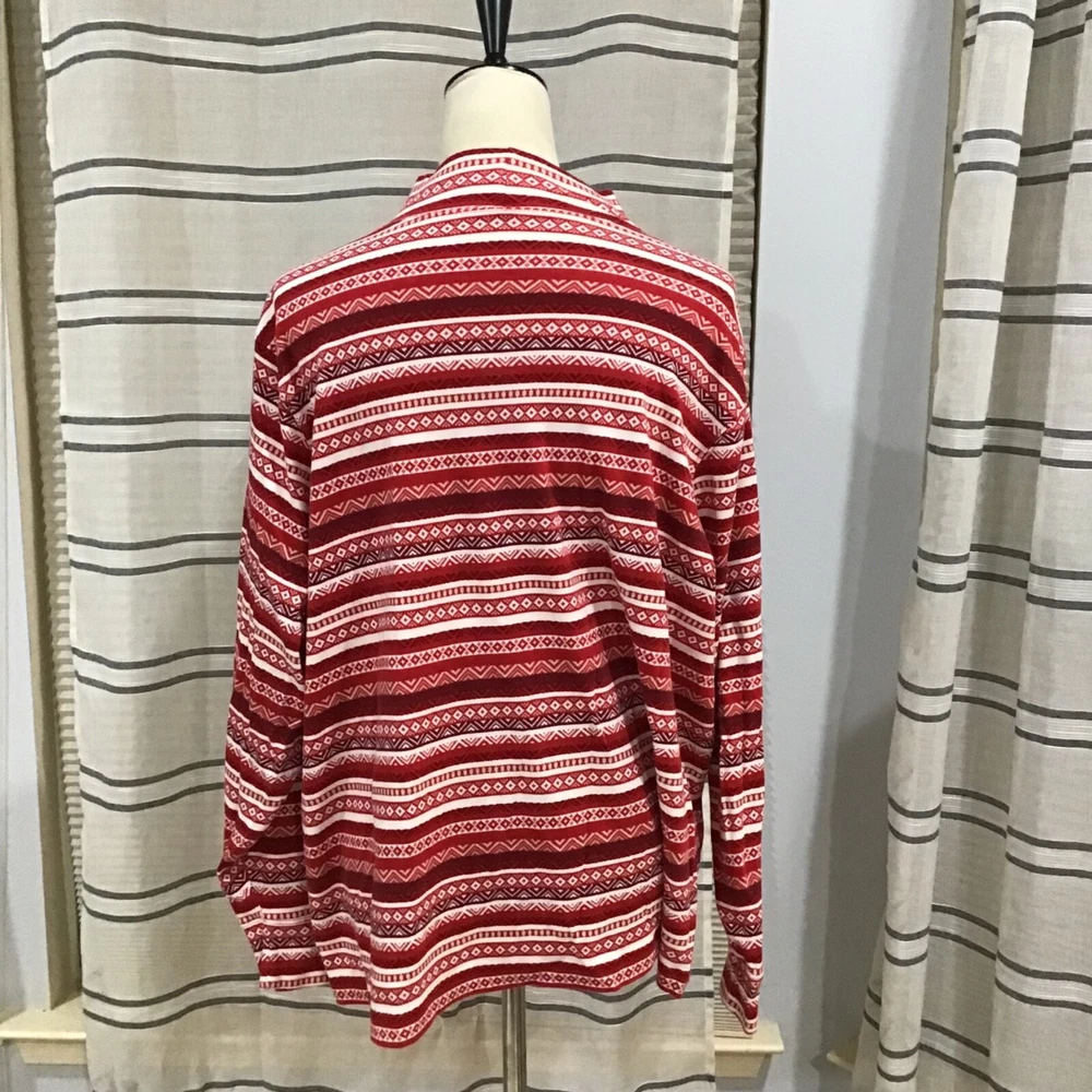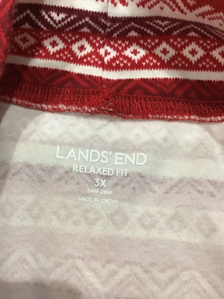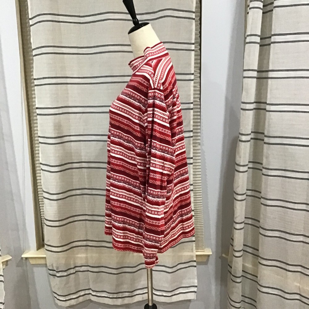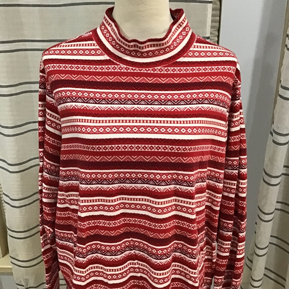 Lands End Women Size 3X Relax Fit Fair Isle Holiday Red Mock Neck Top Stripes