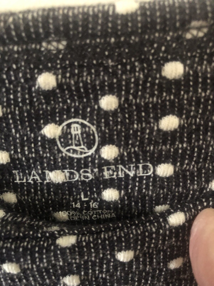 Excellent condition……. This Lands' End tunic shirt is a versatile addition to any wardrobe. The polka dot pattern adds a touch of playfulness to the gray and white color combination, making it suitable for travel, casual outings, or even business meetings. The shirt is made of 100% cotton fabric, ensuring comfort and easy maintenance with machine washable garment care. The casual sleeve type make it suitable for all seasons, whether it's winter, summer, fall, or spring. The round neckline and pullover closure add to its easy wearability, while the regular fit and size type ensure a comfortable and flattering fit for women's size L (14/16). This tunic shirt is a must-have for any fashion-conscious woman looking for a stylish and practical addition to her wardrobe.