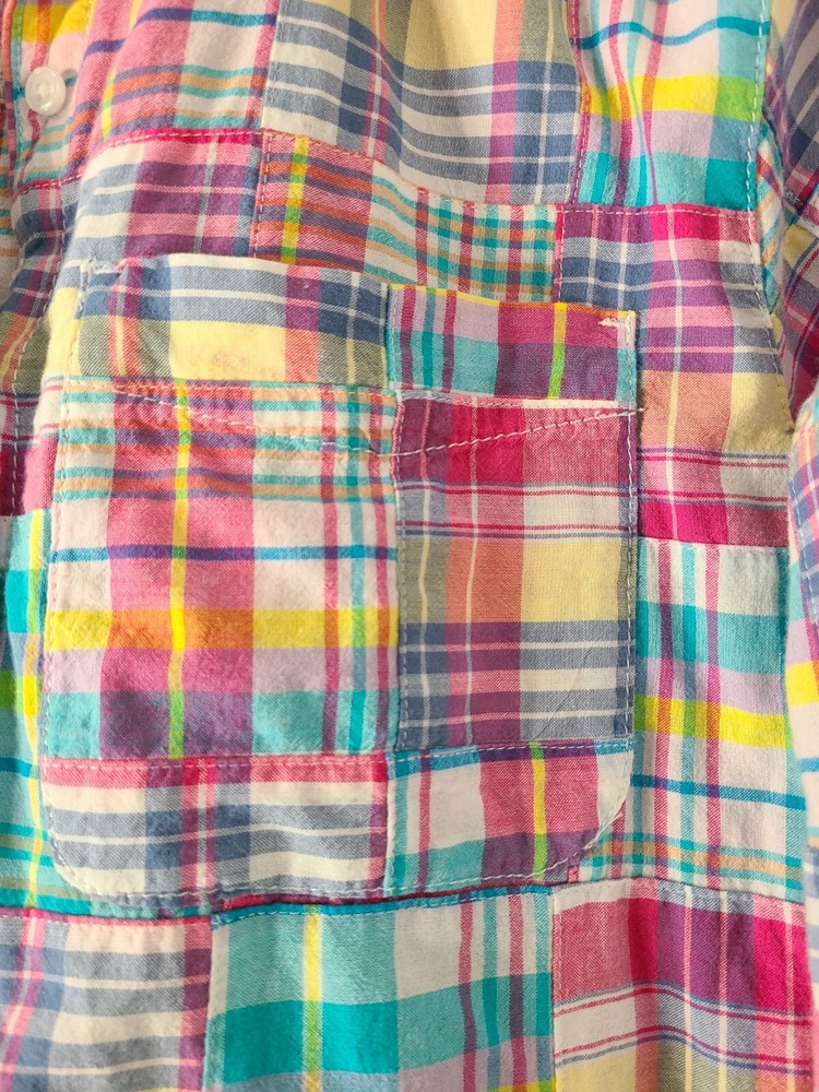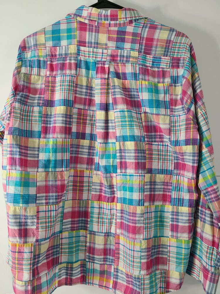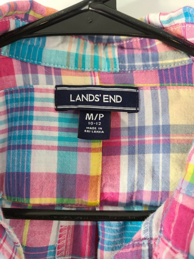 Lands End Womens Green Plaid Longsleeve Buttondown Shirt Size Petite M/10-12.