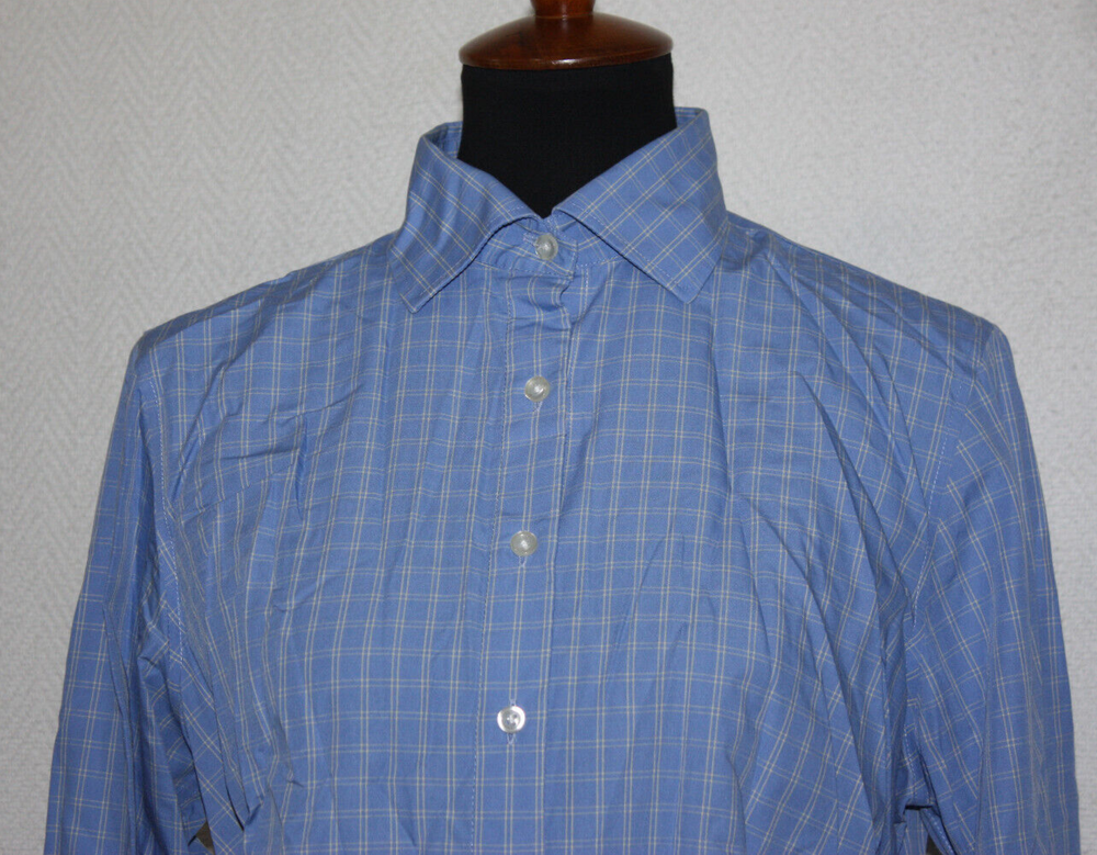 Welcome to Pim's clothing sales Very nice condition lightweight blouse. Cotton blend button front shirt. Long sleeve with buttoned cuffs. Brand: Lands' End Material: 55% Cotton 45% Polyester Size : Tag removed - see measurements below Bust: 21 armpit to armpit Waist: 19 Shoulders: 16 Length: 26 back of collar to hem (Ask if you need more measurements) Please Remember all Clothing Items may fit differently depending on Brand, Fit, Use or Prior customization. We strongly urge our customers to check measurements first to guarantee proper fitting. Please be sure to check out our listings frequently for more high quality Designer Brand clothing items at a fraction of the price. We are getting new inventory all the time! You never know what amazing deals you may find :) Shipping discounts will be provided for multiple purchases - Please contact us after multiple purchases for an updated invoice.