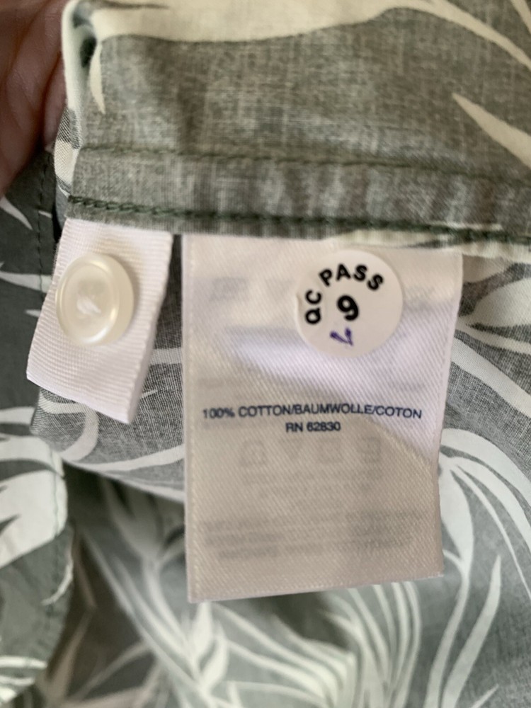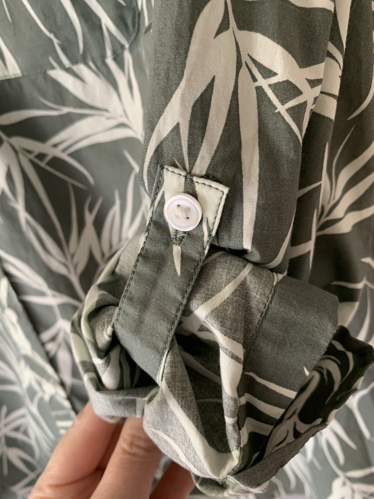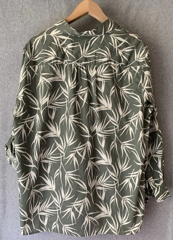 Lands End Womens Button Front Roll Tab Blouse Sz 1X Green Floral Tropical See pics for measurements.