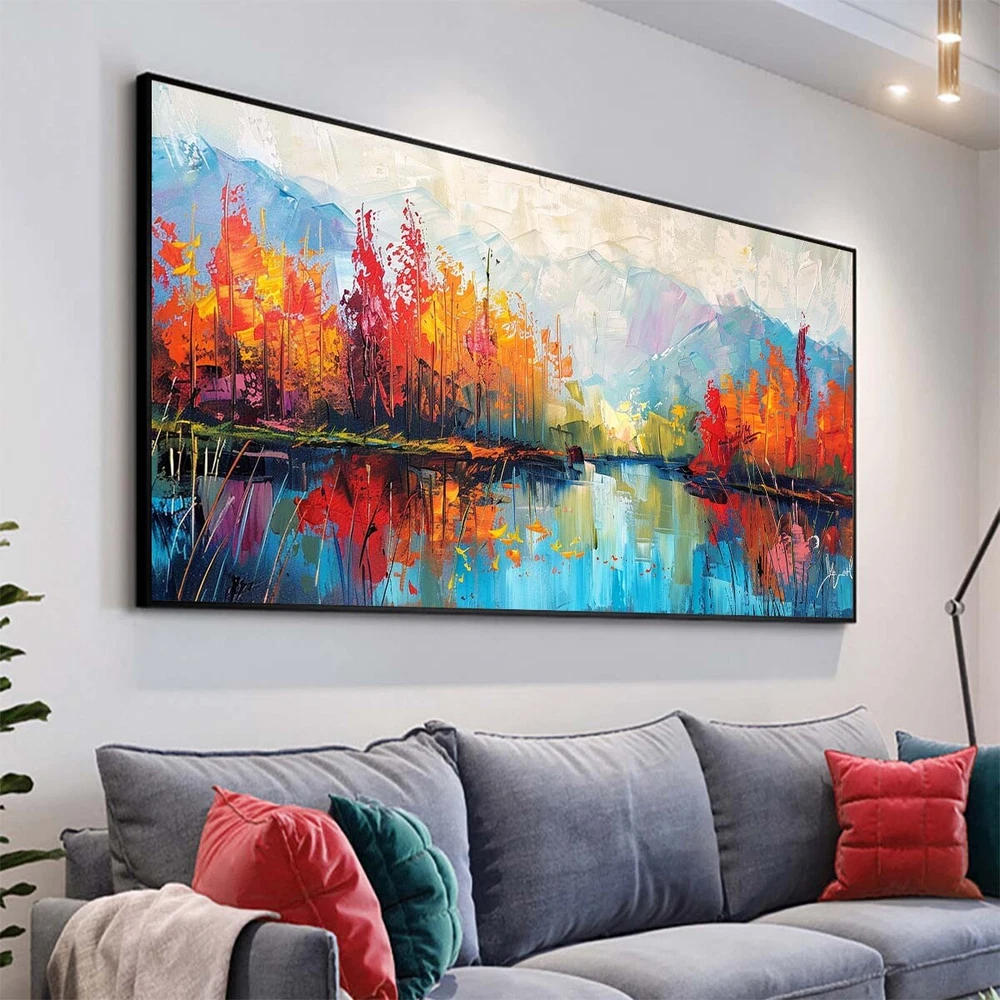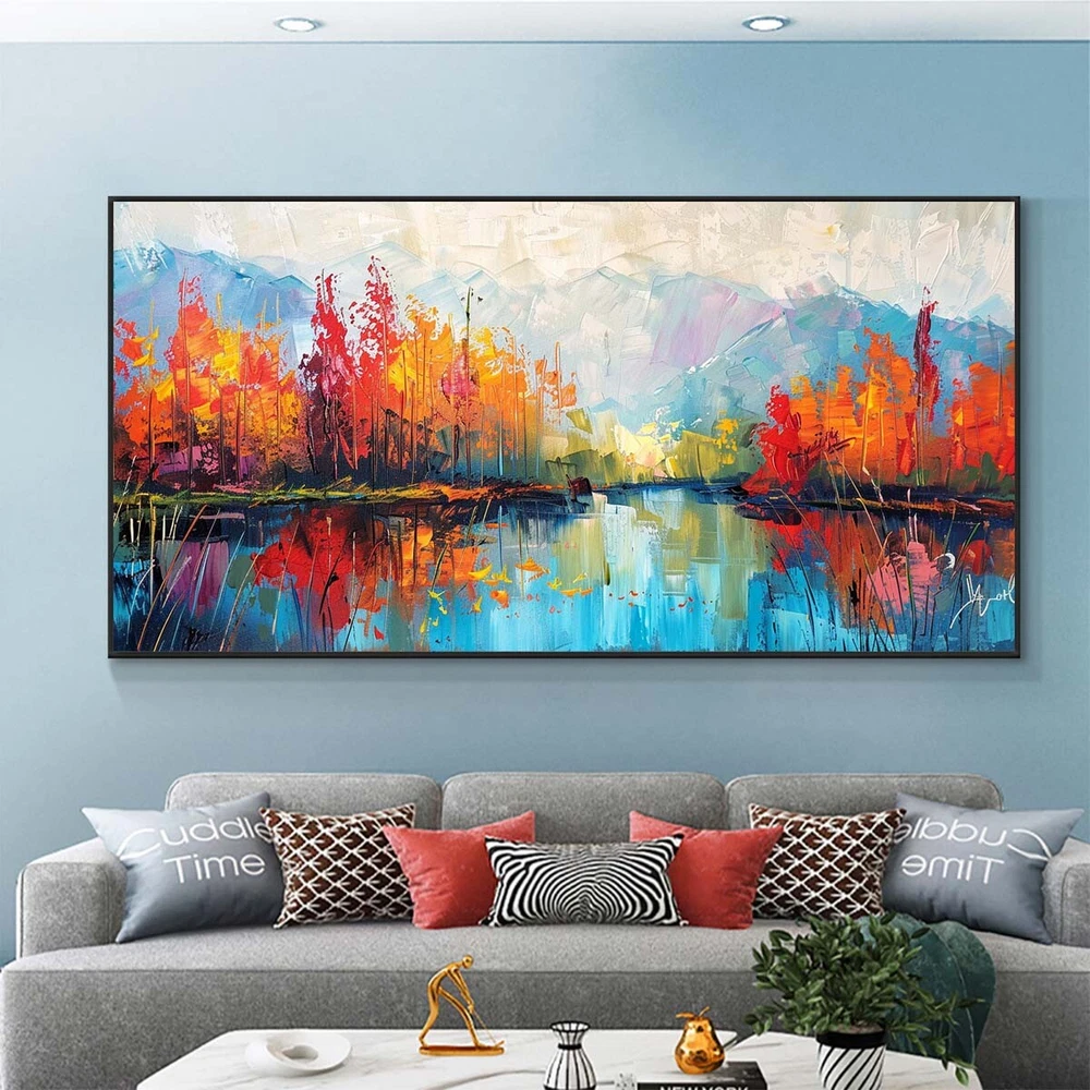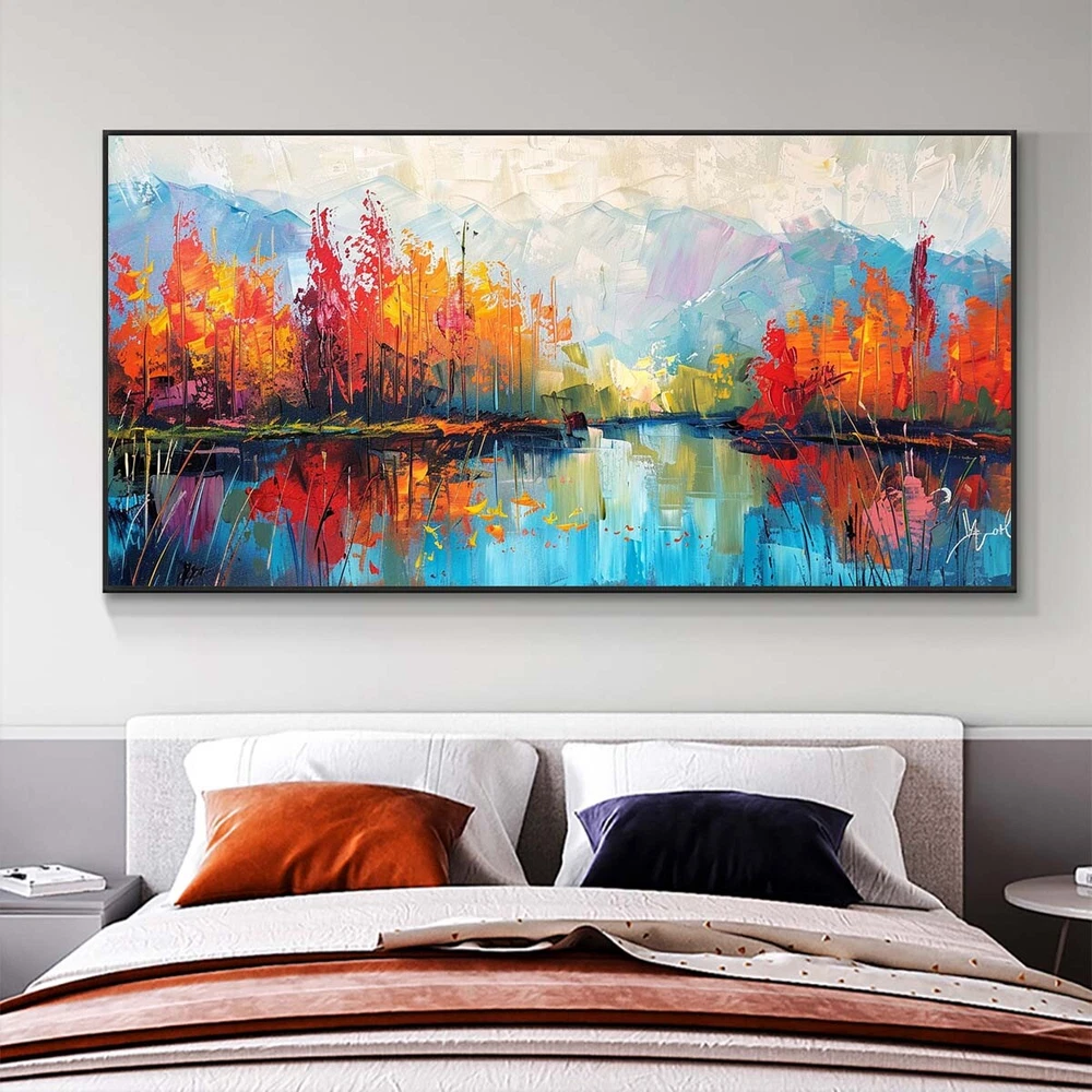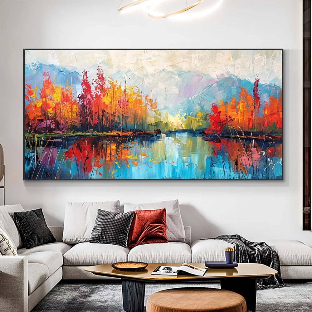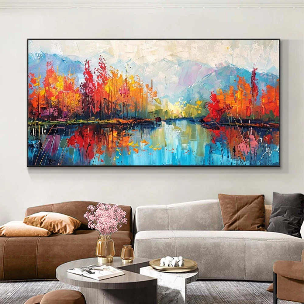 Landscape Oil Painting On Canvas Hand Painted Minimalist Wall Art ecor orange
