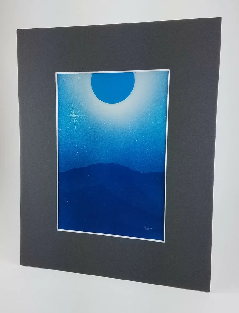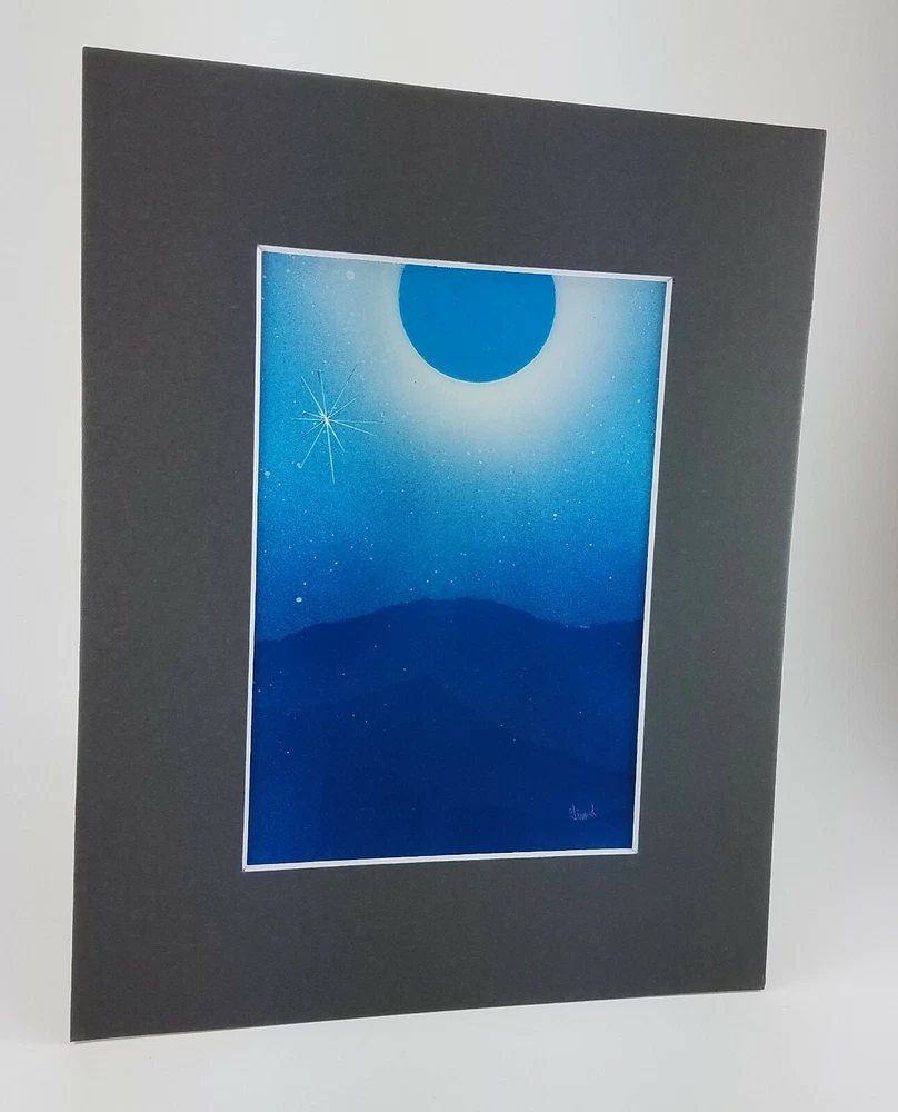 Country/Region of Manufacture: United States Artist: Jason Girard Mountains, hills, smaller art, original: Original paintings, Jason, 2000-Now blue, landscape, moon art, painting: Jason Girard, 2000-Now Height (Inches): 7 Date of Creation: 2000-Now Style: Urban Art Personalize: Yes Bundle Description: art, matte board, backing board, sleeve Unit of Sale: Single Piece Features: Matted, Signed Subject: Landscape, Moons Signed By: jason girard Size: Small Production Technique: Spray painted Personalization Instructions: I can personalize the front or back upon request. Region of Origin: US Width (Inches): 5 Listed By: Artist Color: Multi-Color Original/Licensed Reproduction: Original Framing: Matted Signed: Yes Custom Bundle: Yes Time Period Produced: 2010-2019 Painting Surface: Photo Paper Year of Production: 2018 Type: Painting aerosol, spray art, miniature paint: Jason, 2000-Now art Handmade: Yes Material: Spray Paint gray mat, matted, signed, stars: scenic art, scenery, medium blue
