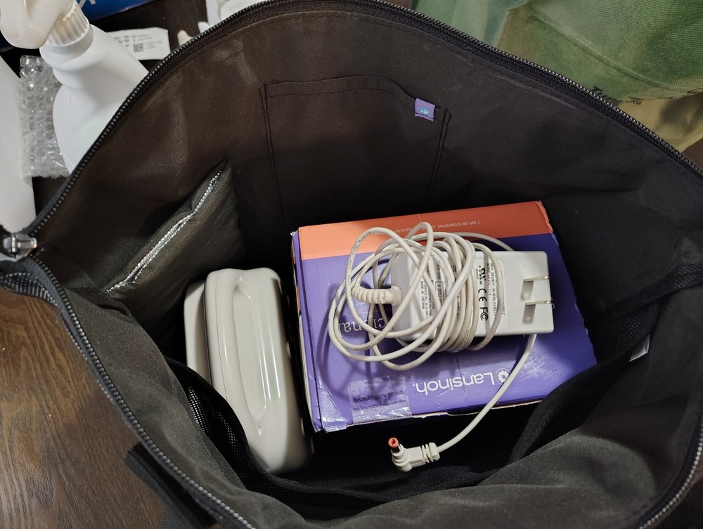 The Lansinoh Smartpump 3.0 Rechargeable Double Breast Pump is a convenient and efficient option for breastfeeding mothers. With its double electric design and adjustable settings, it allows for easy customization to fit individual needs. The hands-free operation and memory feature make it user-friendly, while the BPA free materials ensure safety for both mom and baby. The sleek white design and low noise operation add to the overall appeal of this innovative pumping solution. Powered by batteries, this pump is ideal for on-the-go use, making it a practical choice for busy parents. COMES WITH MAIN UNIT BRAND NEW CUPS AND WIRES AND THE POWER SUPPLY ALONG WITH A CARRYING BAG.