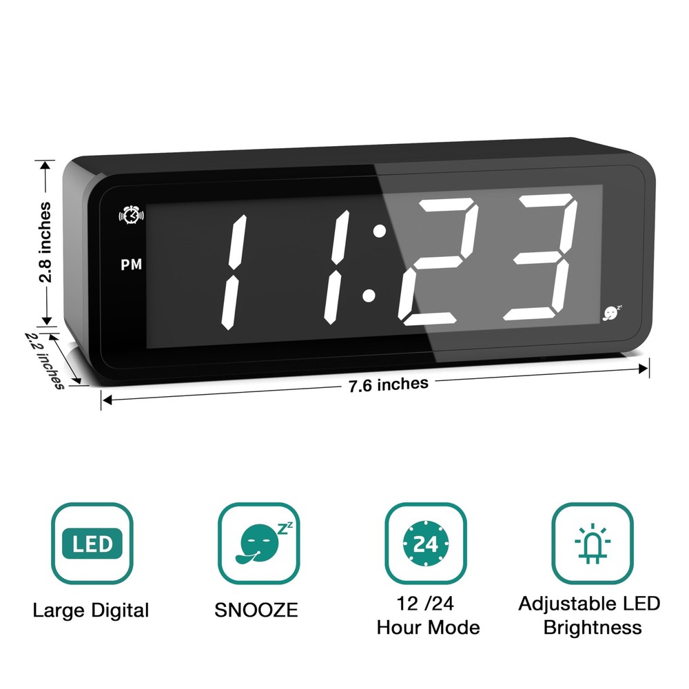 Large LED Time Display - 1.8" tall red number 24hour light LED time display, make the time can be read clearly visible day and night, even in dark. 1.8'' tall LED number and they are showing hour and minute. Even the elderly and the dementia patients can recognize the time easily. LED Digital Clock - There are 3 levels of brightness for your option, high/ middle/ low. The led alarm clock will enter into Night mode and dim automatically at 8:00pm~6:00am to protect your eyes at night and save energy. No blinding lights or any annoying sounds disturb your sleep, create an peaceful environment for sleep. Battery Operated Alarm Clock - This alarm days clock is Battery Operated Only, 2 pcs D size alkaline batteries ( not included ) can Keep this clock work for more than 1 year. The additional alarm clock features can wake you up in the morning or help you keep track of dates to avoid missing any important meetings or appointments. Alarm Clock & Snooze Function - Separate alarm button for hour and minute set, turn on the alarm, easy to set and use. 60s ascending alarm volume. Simply press the SNOOZE button on the top of the clock to get extra 7 minutes sleep. You can repeat this step and delay the alarming for 3 times at most. Best Gift Idea - Best gift idea for elderly, seniors, impaired vision, dementia, alzheimer's, memory loss, your kids, boys, girls, friends, family, parents and lovers.