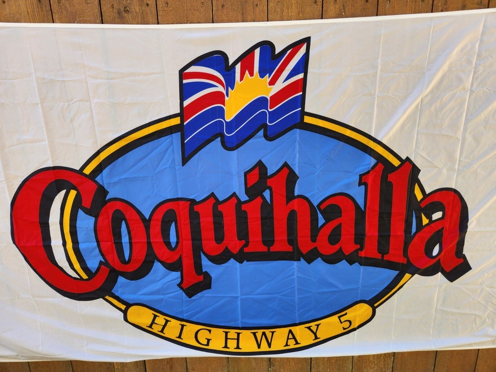 COQUIHALLA HIGHWAY 5 FLAG LARGE 45"×91" BRITISH COLUMBIA CANADA HBX4. Condition is Used. Shipped with Canada Post Regular Parcel.