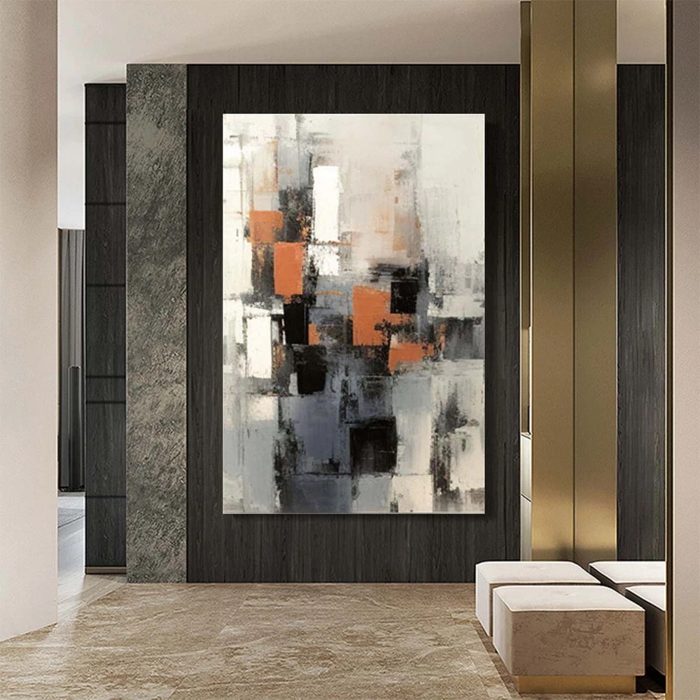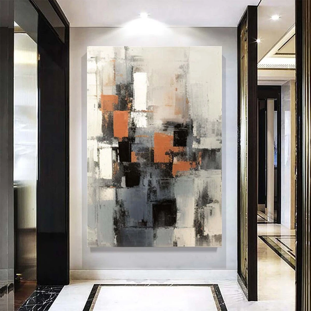 Large Abstract Oil Painting Handmade Canvas Colorful Textured Painting Grey Art