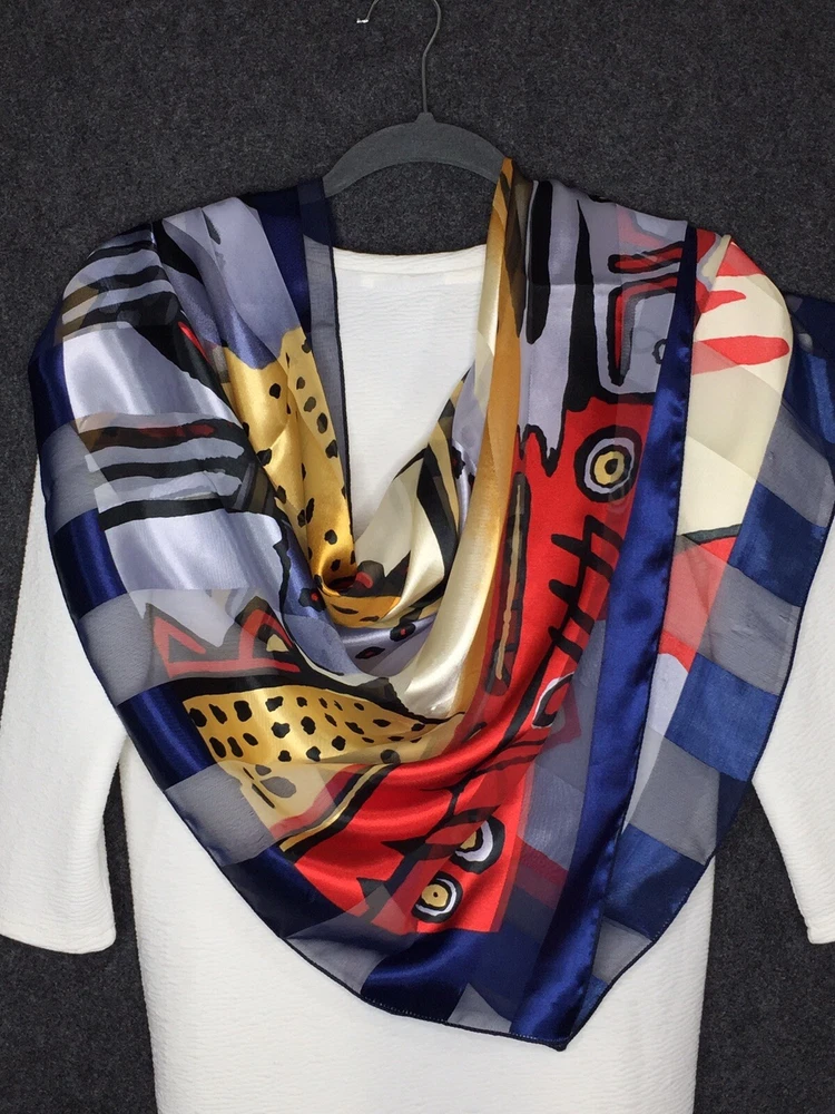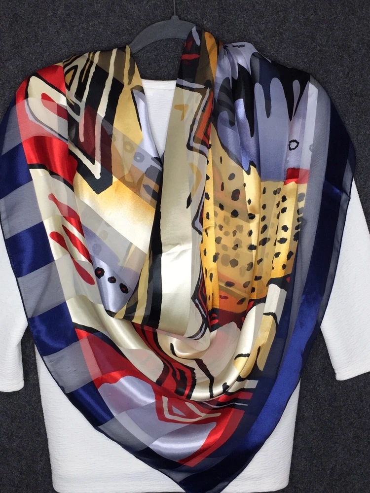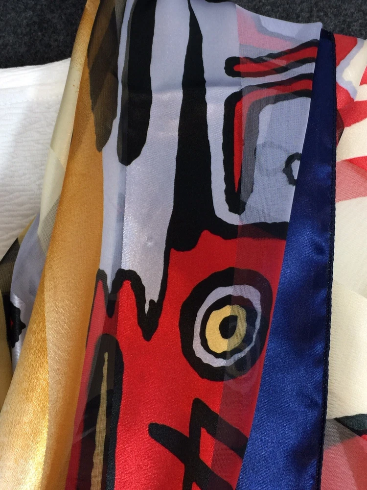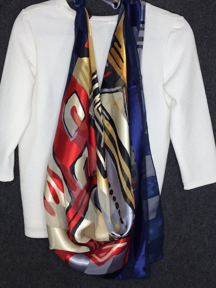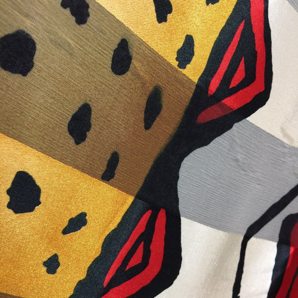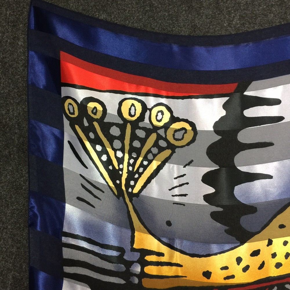 ART TO WEAR - 38" x 40" SILKY SCARF with Amazing Images and Details Soft silky, satin-feel fabric; unsigned; bright dynamic coloration Statement piece! Unique & bold look! Measurements: Length 38", Width 40" General Listing information Thank you for shopping with ArtsyWear! All measurements taken flat across front unless otherwise noted. Payment is expected within (3) three days of an accepted offer or winning bid. If you wish to combine items for mailing, please email me before you pay and I will send an invoice for combined shipping Questions? Feel free to message me with reasonable offers, item specific questions & combined shipping pricing. I appreciate good feedback & will reciprocate! Item pictures P ictures are considered a part of the description; zoom in please A ny faults with clothing items will be noted in the description. Check my description & comments & zoom in to pictures. Cleaning Clothing is sent clean & odor free. All items come from a smoke-free environment. Packaging Items at or below 16 oz. are sent First Class USPS. Above that weight, items are sent at lowest USPS Priority option. An additional fee may be assessed for different shipping options. Shipping I currently ship to the U.S only, unless stated otherwise. I will combine shipping on most items. Tracking is included with domestic purchases. Orders placed after noon on Friday most likely shipped first thing Monday morning. Return Policy Although I DO NOT ACCEPT RETURNS, I want all customers to be happy with their items. Please contact me directly ASAP if there are any issues with your purchased item.
