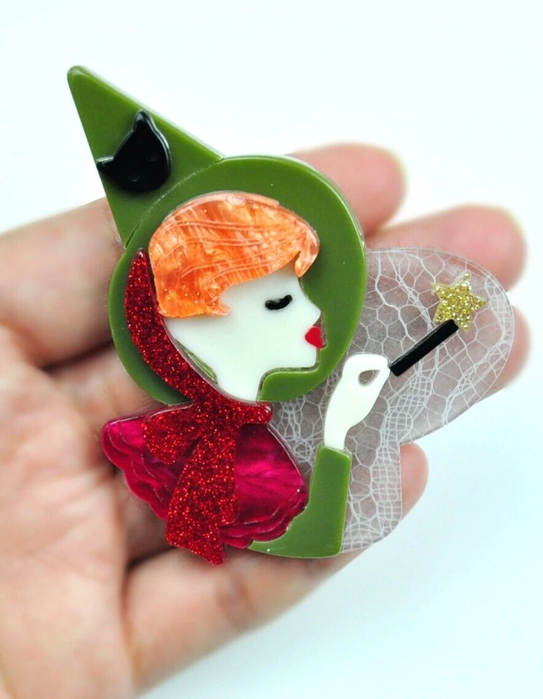 Add a touch of magic to your outfit with this stunning large acrylic fairy brooch pin. The intricate design features a colorful face and is perfect for any occasion, whether it's Mother's Day, a wedding, or just a casual day out. Measuring 3 inches long and 2.25 inches wide, this brooch is a trendy and fashionable accessory that suits any gender. The brooch is made from high-quality acrylic and is 100% brand new. It is nickel-free and doesn't cause any irritation. This brooch is a perfect gift for women, men, unisex, girls, and lady. It suits various outfits including suits, sweaters, scarves, dresses, hats, and bags. With its beautiful design and amazing features, this brooch is a must-have for any jewelry collection. All my brooches ship from California, USA.