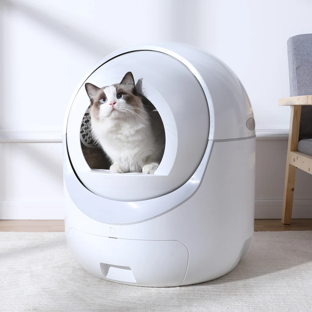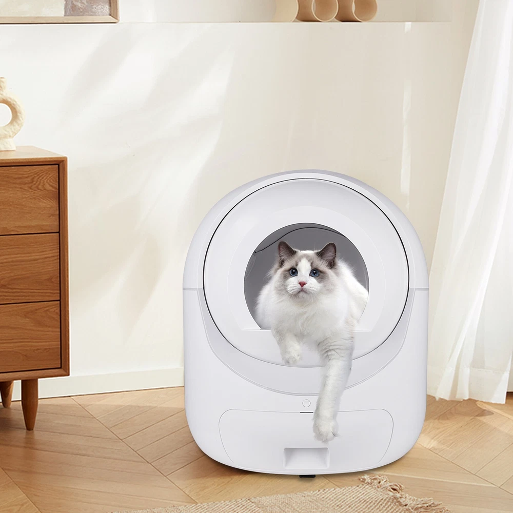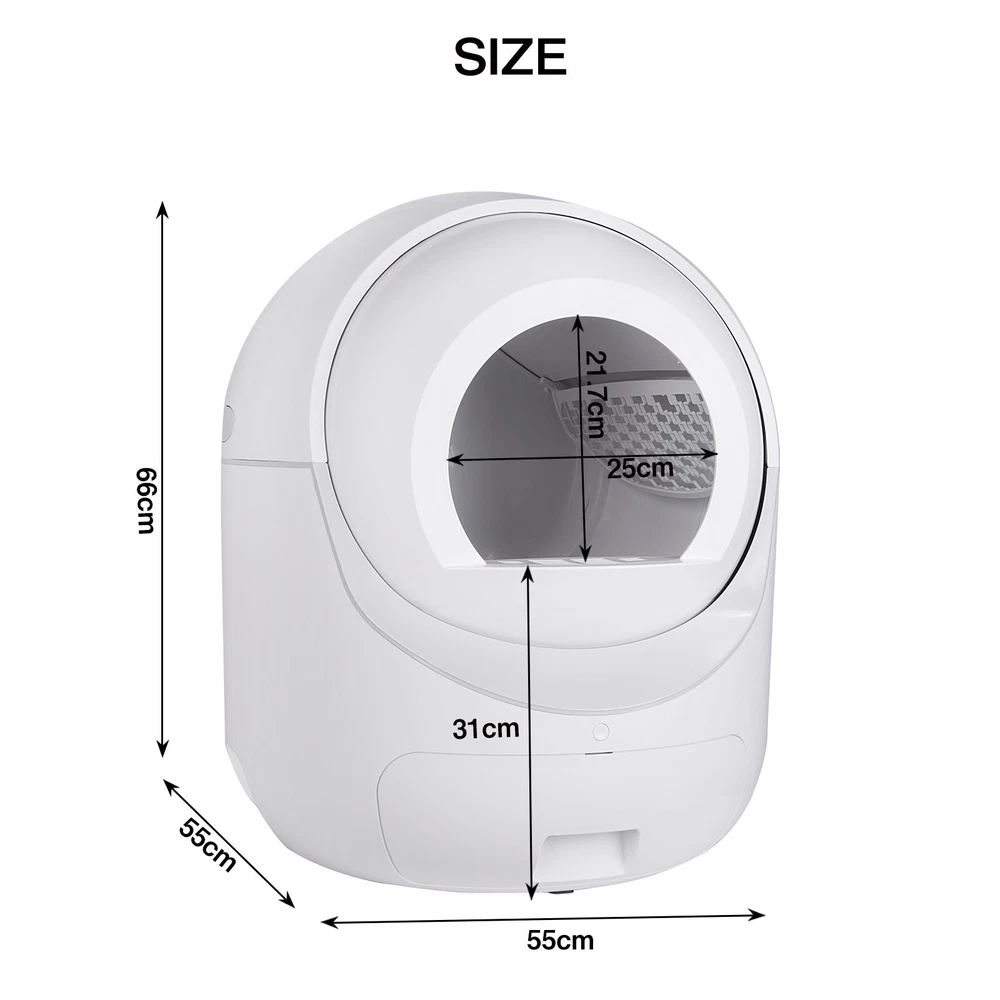 ITEM DESCRIPTION Descriptions: We are dedicated to providing premium, easy-to-use and long-lasting pet supplies with the best service to every customer. Our team all love pets and technology. We truly believe that every pet deserves a long and healthy life full of happiness and love. We care about pet life and health, and hope to provide you and your pet with the most comfortable experience through our products. Effortless Cleaning: Our automatic cat litter box takes the hassle out of maintaining a clean and odor-free environment for your beloved feline friend. No more scooping and sifting – the advanced self-cleaning mechanism ensures your cat always has a fresh and hygienic litter box to use. Advanced Odor Control: Equipped with a cutting-edge odor elimination system, this self cleaning cat litter box neutralizes unpleasant smells and keeps your home fresh and inviting. Enjoy a clean, odor-free space, without the need for constant maintenance. Eco-friendly and Cost-effective: By reducing the amount of litter wasted and minimizing the frequency of litter changes, our automatic litter box not only helps you save money but also contributes to a greener planet. Spend less on litter and reduce your carbon footprint at the same time. Quiet and Discreet Operation: Designed with your home in mind, this self cleaning litter box operates quietly and discreetly, ensuring it doesn't disturb your daily life. The compact design allows it to blend seamlessly with your home decor while providing your cat with a comfortable and private space. Safety First: Our cat litter box self cleaning is engineered with your cat's safety as a top priority. Featuring sensors that detect your cat's presence and a delay mechanism that prevents the cleaning cycle from starting while your cat is inside, you can have peace of mind knowing your feline friend is safe and sound. Easy Set-Up and Maintenance: With simple assembly instructions and an intuitive design, our self cleaning litter box for multiple cats is a breeze to set up and maintain. Plus, the removable components make it easy to clean, ensuring you can provide your cat with a consistently hygienic environment. Features: Safety, The top priority: Protect your pet with three layers of advanced safety technology that stop working whenever your cat is detected. Secure induction motor protection. Physical separation anti-pinch device. Gravity sensing device stop when cat step on. Clearance Function: Easy for you to simply and replace cat litter. When it needs to be cleaned and replaced at one time, you can press and hold the button for more than 7s and release it after hearing the emit a didi, or use the clearing button in the mobile APP to perform the clearing operation. Connected Smart Home App: Remotely take track of your cats situation.You can access and adjust settings and view activity reports anywhere you have an internet connection. Easy to Disassemble, Screw Free: There is no need to assemble after receiving .When cleaning it, you don't need to screw down. It can be easily disassembled in 10 seconds. Major parts are washable. We recommend cleaning the trash can at least once a week, the frequency of cleaning depends on the cat's family. High Capacity&Large Space: The large interior space provides a good toileting experience for cats. It has 10L waste drawer and 6L cat litter capacity, which can support 2 weeks without cleaning. Don't worry when the pet owner on short trips. It is suitable for cats: 2.2lb-28lb. Who am I? Your smart pet life assistants Smart chip, anti-pinch design, your cat must be safe. Fully automatic work, no more frequent manual cleaning of cat litter. Large capacity design, 2.2-28lb cats can be used. Full cat litter compatible, automatic deodorization design Safe & Smart Self Cleaning Cat Litter Box, equipped with 4 highly sensitive gravity sensors and an anti-pinch motor. It will not work when there are cats inside or nearby. When there is an abnormality in the work, Self Cleaning Cat Litter Box will stop immediately to ensure safety. And supports remote operation via Wi-Fi link app, you can check the remaining amount of litter/remaining space in the litter box/machine status in the app. All running messages will be sent to your phone through the app. Large Capacity & Support Most Cat Litter Large Capacity: Automatic Cat Litter Box, has a internal space of 70L, a trash collection box of 10L. Maximum support 6L of cat litter, enough to use 15 days for one cat. Automatic Cat Litter Box, is suitable for cats weighing between 2.2lb to 28lb. Available for almost all cats Support Most Cat Litters: It's suitable for Tofu Litter, Bentonite litter, Sodium based litter, Mixed Litter and all other kinds of cat litters, except crystal cat litters. Odor Removal & Easy to Wash Odor Removal: Independently developed purifying device releases ozone to remove unpleasant odors. After each excrement shoveling, it will purify automatically to remove peculiar smell timely, keep the air fresh. Easy to Disassemble and Wash: There is no need to assemble. It is easy to disassemble without tools. The top cover, hatch and toilet bin are all washable. Specification: Material: Eco-friendly plastic Capacity: 70L Drum Space + 10L Drawer Capacity Color: White Product Dimensions Assembled Length (in.):22.24 Assembled Width (in.):22.24 Assembled Height (in.):25.98 Item Weight: 25 Pounds Target Species: Cat Weight Limit: 28 Pounds Allergen Information: Allergen-Free Package Included: 1x Self-cleaning Cat Litter Box 1x User Manual PAYMENT SHIPPING RETURNS ABOUT US PAYMENT SHIPPING RETURNS ABOUT US STORE HOME HOT ITEMS ADD TO FAVS FEEDBACK CONTACT US Copyright ©smartbattery169. All rights reserved