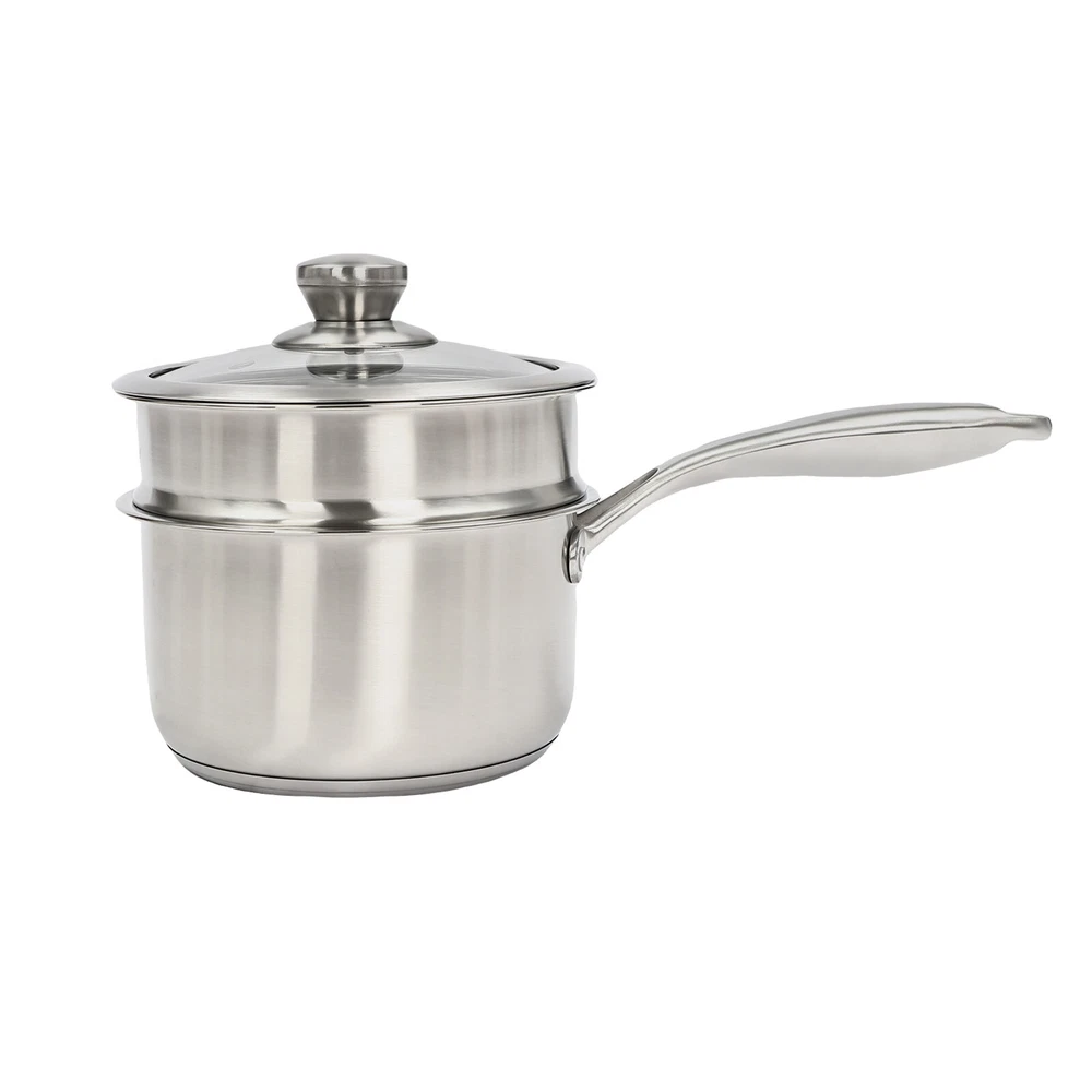 Package Included 1* Saucepan with Handle 1* Steamer 1* Lid Large Capacity Sauce Pan For Cooking With Handle Double Layer Steaming Pot Description If you like to cook food at home, then this steamer pot made of high-quality stainless steel is ideal for you. It can be used to make soups and steam a variety of foods at the same time, and its excellent heat conductivity provides you with increased cooking efficiency. One pot for two purposes, you should not miss such a convenient cooking prop, come and enjoy the fun of cooking! Specification Material: 304 Stainless Steel, 201 Stainless Steel, 430 Stainless Steel, Glass, Aluminum Process: Wire Drawing, Polishing Color: Silver Shape: Round Style: Modern Assembly Required: No Is Dishwasher Safe: Yes Is Oven Safe: Yes Capacity: 1297ml/ 1.37qt Steamer Size(D*H): 18*5.5cm/ 7.08*2.16in Saucepan Size(D*H): 14*9.8cm/ 5.51*3.85in Handle Length: 19cm/ 7.48in Thickness: 0.5mm/ 0.02in Gross Weight: 1.8kg/ 3.97 lbs Net Weight: 1.6kg/ 3.53 lbs Package Size: 35*12*18 cm/ 13.78*4.72*7.09in Package Included 1* Saucepan with Handle 1* Steamer 1* Lid Key Features Long Service Life: This product is mainly made of 304 stainless steel and 210 stainless steel and adopts wire drawing and polishing processes, making it bright and resistant to abrasion, heat, rust, and deformation and ensuring a long service life. Additionally, it adopts an uncoated design to take care of your family's health. Steaming and Cooking: This product includes a saucepan for cooking, stewing soup, making Congee, etc., and a steamer for steaming seafood, dumplings, egg custard, etc. while preserving the nutrients and flavors of the dish for a healthier and tastier dining experience. They can be used simultaneously to improve cooking efficiency. Good Heat Conductivity: The three -layer composite pot bottom design (304 stainless steel + aluminum + 430 stainless steel) can conduct heat quickly and evenly to improve the efficiency and quality of cooking without a long waiting time. Visual Design: The clear glass lid allows you to easily observe the status of the food inside the pot without removing the lid. Large Capacity: Its 1.37qt capacity can handle your breakfast, lunch, and dinner and allow you to enjoy every meal you have. Its deepening design allows you to cook more comfortably without worrying about food overflowing out of the pot. Space Saving: The overlapping design allows you to place the steamer and saucepan together, which saves tabletop space and makes your kitchen more organized. Easy to Clean: The smooth surface of the stainless steel makes it very easy to clean. After use, you can easily clean it with water and detergent or put it in the dishwasher. Good Customer Service: We stand behind all our guests and look forward to assisting you with your purchase. It is our pleasure to answer your confusion and questions. The end of the story between us is not "we sell and you buy". Details Practical Lid: This lid with a handle and ventilation hole can effectively prevent dust and insects from entering, reduce internal air pressure, and make it easy for you to open and close. Safe Handle: The 7.48" long handle is fixed with rivets and features a hollow design, ensuring firmness, providing a comfortable grip, preventing burns, and improving safety in use. Moreover, the hanging hole design at the handle end facilitates hanging the saucepan on the wall for storage. Smooth Edge: The rounded and smooth edges not only add to the aesthetics of the product but also improve the safety of use. Application It is suitable for homes, restaurants, hotels, fast food stores, and other places. It applies to a ll kinds of stoves, such as induction, electric, ceramic, or gas stoves. Notes Please note that the newly purchased product needs to be scrubbed clean with detergent and white vinegar, and should not be put into use by simply rinsing with water. The black substance washed out is the residue produced after the metal mirror treatment, which is not a product quality problem. If you can't clean it, please use hot water and white vinegar to clean it at a ratio of 10 to 1 (white vinegar shouldn't be too much), and then wash it and dry it with boiling water. Please note that washing the product with water for a long time will make the surface dull and lose its proper luster. Please avoid contact with sharp objects and strong acids and alkalis to ensure the surface is not scratched and food hygiene and safety. Please wash and dry it thoroughly after each use and place it in a dry place to avoid food grease residue, which may cause rust. Please use lukewarm water for a better cleaning effect. Sponge, dishcloth, and detergent/detergent can be used as cleaning tools. It is not recommended to use wire brushes salt and other large particles to scrub the product, which will cause the mirror surface to darken and become old. In case of sticking, it is recommended to use lukewarm water until it is soft and easy to clean. Please allow the slight color difference caused by the shooting light and the 1-3 cm error due to manual measurement, and make sure you do not mind before ordering. Payment Delivery details Terms of sales About us Contact us Payment We accept ebay payment 。 Fees such as import duties, taxes are not included in the item price or shipping costs. These charges are the buyer's responsibility. Delivery details Shipping: 2-9 working days to: USA Terms of sales We maintain high standards of excellence and strive for hundred percent customer satisfaction. Feedback is very important to us. We hope that you contact us immediately before you give neutral or negative feedback, so that we can address your concerns. It is impossible to address issues if we do not know about them! About us Your satis faction is our ultimate goal. We work hard to earn your trust and future business. Our certified technicians have tested each item before shipping. The unit comes with 1 year limited warranty on all manufacturing d