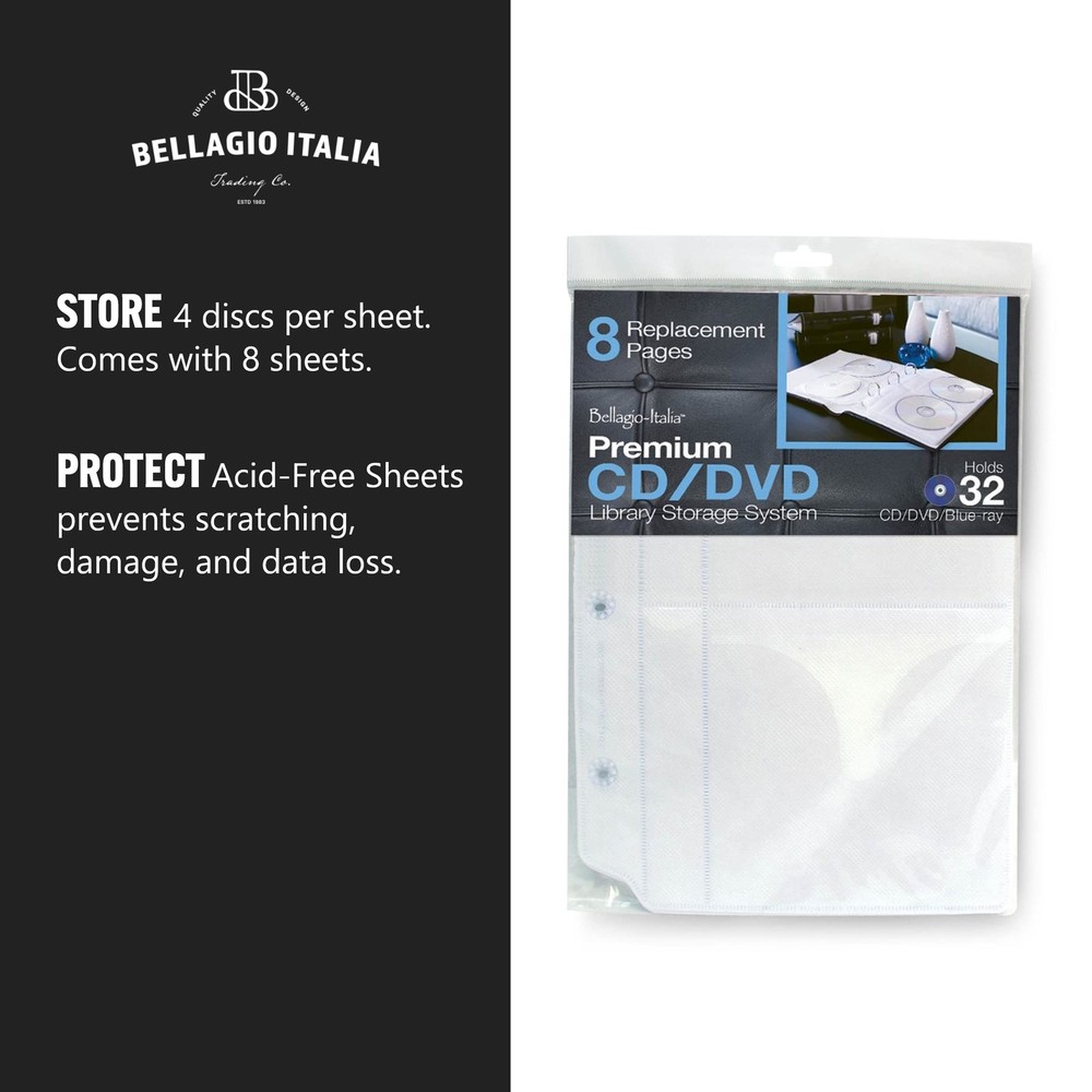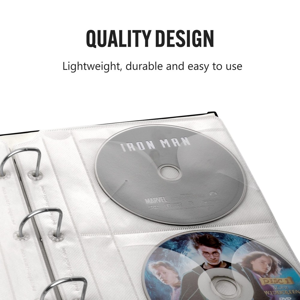 Expand your CD or DVD collection possibilities with our CD DVD Binder Inserts. Each refill pack includes 8 insert pages which hold and protect another 32 CDs or DVDs in your Large CD DVD Storage Binder. These inserts are also designed to hold the CD or DVD booklets, thus keeping your collection complete, but not missing the details. Note that the inserts do not fit a regular 3-ring binder, and are only designed for the line of CD storage solutions. light weight, durable, easy to use great for keeping and storing cds/dvds clear plastic to see your dvds/cds