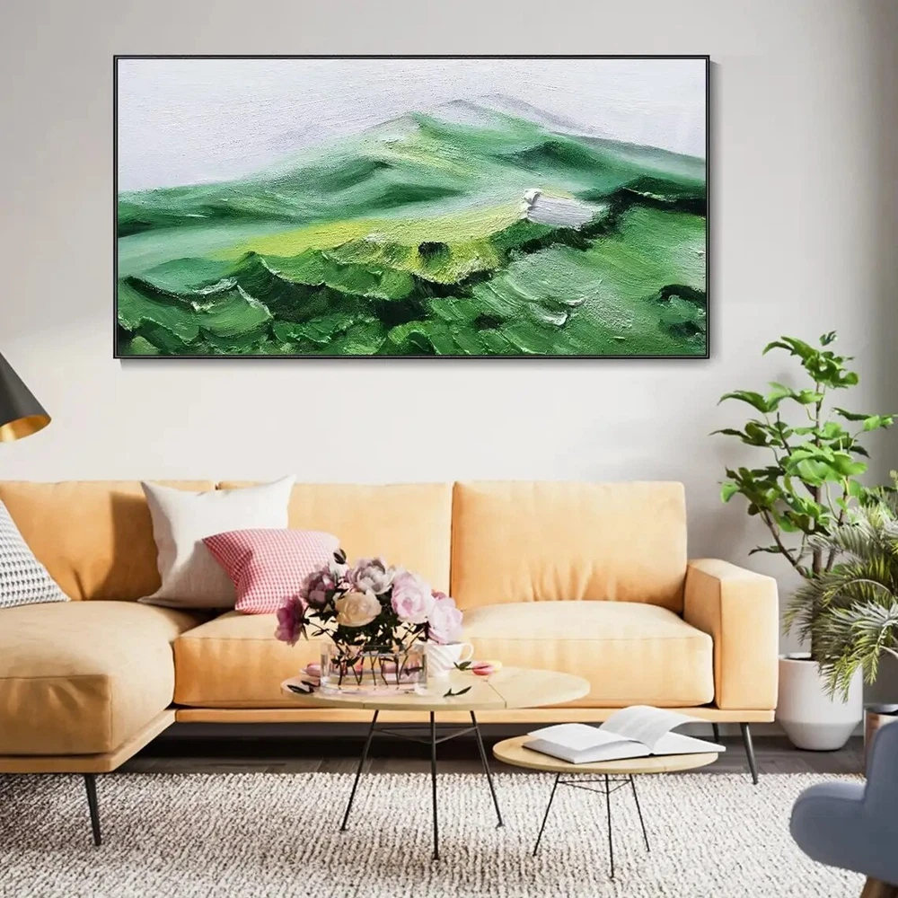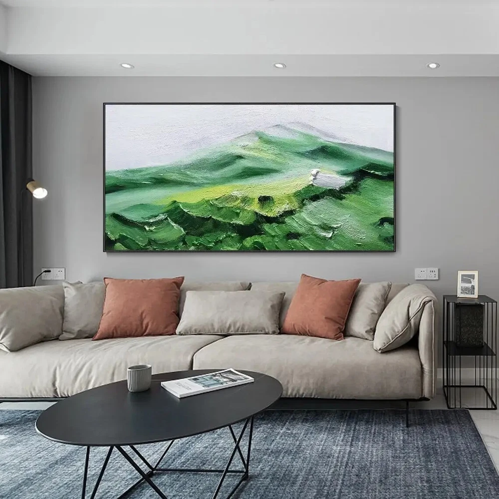 Large Heavy Texture Snow Mountain Oil Painting On Canvas Hand Painted Green