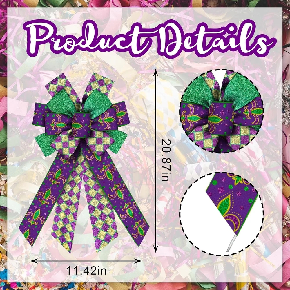 Store New Arrivals Add to Favorite View Feedback Contact Fast deliveries to the customer's home Quality customer service John Make the customers happy! Large Mardi Gras Bows for Wreath, Mardi Gras Fleur De Lis Wreath Bows Glitter Purple Plaid Bows Fat Tuesday Tree Bows Ornaments for Front Door Home New Orleans Carnival Decorations Description Design: The Mardi Gras bows are composed of three ribbons, one is purple golden buffalo plaid ribbon, one is glitter green ribbon, the other is purple burlap ribbon with Fleur de Lis pattern. These exquisite decorations bows are enough for your daily use and festival decorations. High Quality: These holiday purple bows are made of polyester, linen material. They are light, soft and can be folded easily. There is an iron wire behind the bow for hanging at will. The edge of the ribbon is sealed with metal wire, which can be used in a variety of shapes. Easy to Use: The glitter green purple craft bow you receive is ready made and only needs to be adjusted slightly. If you want to change the shape and size of the bow, you just need to untie the gold thread on the back, and then fold it as you want. After finished, fix it with gold wire. Wide Application: These festival front door bows are suitable for Mardi Gras party/carnival/Spring party/ parade party/masquerade balls/cosplay party decorations. They can be decorated with wreaths, walls, doors, yards, trees, flower baskets, gift boxes, party backgrounds, windows, fences, fireplaces, stairs, etc. You can also apply it to Mardi Gras masquerade cosplay party to add a wonderful atmosphere. Package: 1 piece large Mardi Gras farmhouse bow in packing bag. (Bow Size:11.42 × 20.86 inches) Material: Polyester, Linen Pattern: Glitter gold purple green ribbon bow, Fleur de Lis pattern bow Size: 11.42 × 20.86 inches Package included: Large Mardi Gras Fat Tuesday wreath bow *1 Wide application: These glitter buffalo plaid ribbon bows are suitable for home decoration. They can be decorated on front doors, walls, gifts, yards, flower baskets, trees, party backgrounds, windows, fences, fireplaces, stairs, etc. You can also apply it to Mardi Gras party/parade/masquerade party/costume play/family gathering to add a carnival atmosphere. Note: 1. Due to the different monitor and light effects, the actual color of the item might be slightly different from the color shown in the pictures. Thank you! 2. Please allow 1-2 cm measuring deviation due to manual measurement. 3. After the wreath bow arrives, it may be squeezed or deformed due to packaging and logistics handling. But don't worry, just adjust it slightly, it will become full as shown in the picture. Item Weight 1.92 ounces Batteries required No Color Style 1: Purple Plaid Package Dimensions 3.8 x 3.8 x 0.7 inches ABOUT US We offer the best prices around on high quality products. Our E-store includes media such as books, movies, music and games while offering electronics, toys, sporting apparel, clothing, tools, general home, garden items and more. SHIPPING We are always working hard to ensure your package arrives as soon as possible. Please understand that some factors like weather, high postal traffic, and the performance of shipping companies are outside of our control. We offer free shipping to the lower 48 states and ship within 2 business days of payment, usually sooner. We do not accept P.O. Boxes. Please provide a physical address. For shipping outside of the continental USA, we only use eBay's Global Shipping Program. The item is shipped to KY and then sent to the rest of the world. International customers are responsible for all duties and taxes. Continue to 'check out' to calculate costs for shipping the item to your country. Messages regarding eBay's Global Shipping Program MUST be directed at eBay EXCLUSIVELY. RETURNS We offer a 30-Day Return Policy on items in which you are not completely satisfied with. You have the option of a full-refund or an exchange of the item. No returns are available on items shipped outside of the USA PAYMENT We accept PayPal. CONTACT US This page content is yet to come Please ad us to your favorite seller and visit again later Thank You CUSTOMER SATISFACTION We try our very best to make sure every customer is completely satisfied. If there's a problem, message us! We're happy to help. WE ACCEPT