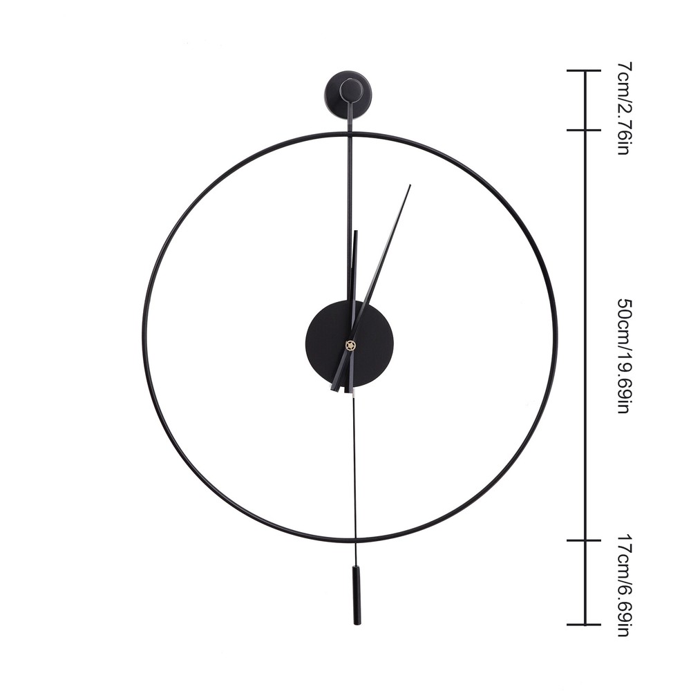 Welcome Description Are you frustrated with the old wall clock at home that keeps ticking? Do you want a quiet, stylish, and durable wall clock? With its high-quality silent movement and metal hands, this wall clock allows you to enjoy every second of silent dreaming. If you are tired of boring walls or want to have more fun in life, then this unique clock will be your ideal choice! Key Features High-quality Materials: This wall clock is made of high-quality iron, which is wear-resistant and durable, ensuring a longer service life. Baking Paint Process: The metal surface is baked lacquered to give it a brilliant and colorful appearance and prevent it from fading. It is also anti-corrosive and rust-proof, prolonging its service life. Low Noise: The clock features a silent quartz movement that runs smoothly and without harsh ticking sounds. It will keep your family free from noise and ensure a good and comfortable night's sleep. Accurate Timekeeping: It is equipped with a high-quality silent movement that runs steadily to guarantee accurate timekeeping, giving you a better user experience. Unique Design: The hollow design of this wall clock highlights a mysterious, elegant and minimalist style. This wall clock can match many modern style home decorations and it can add a distinctive touch to your home. Great Gift Choice : This exquisite wall clock is an ideal gift for parents, friends, teachers, leaders and relatives. It will be the most practical and memorable gift they will ever receive. Time Witness: The wall clock records every second of the warm moments you spend with your family. It is the witness of your good memories. Easy to Clean: It is finished with a baked-on lacquer which gives it a smooth, flat surface for easy cleaning. You can easily wipe off dust and stains with a damp rag. Easy to Install: There are reserved a hanging slot on the back of the base for easy installation. You only need a few simple steps to complete the installation. Excellent After-sales Service: We aim to provide quality products and services. If you have any problems, please feel free to contact us, and we will reply and solve the problem for you as soon as possible. Details Dial Without Numbers: The dial of this wall clock does not have numbers, making the wall clock more simple and generous overall. Metal Pointers: In contrast to plastic pointers, metal pointers are not only stylish and beautiful but also durable and resistant to breakage. Unique Pendulum: The pendulum design on the wall clock is a decorative element and also adds a touch of energy to a quiet space. Application This wall clock is suitable for the living room, hallway, office, study, bedroom, dining room, hall, exhibition hall, and other occasions. It is also an ideal gift choice for your friends or your family. Installation 1. Determine the position of the non-marking nails. 2. Fix the non-marking nails with a hammer. 3. Align the hooks and hang the wall clock. 4. Complete the installation. Specification Material: Iron Pointer Material: Aluminum Color: Black Style: Modern Shape: Round Surface Treatment: Baking Paint Power Source: Battery Powered Number of Batteries Required: 1*AA Battery(Not Included) Mounting Type: Wall Mount Operation Mode: Silent Quartz Movement Base Diameter: 7cm/2.76in Dial Diameter: 50cm/20in Packing Size: 53*7.3*54cm/20.86*2.87*21.25in Net Weight: 1kg/2.2lbs Gross Weight: 1.2kg/2.64lbs Package Included 1* Wall Clock 1* Base 1* Pendulum 1* Non-marking Nail 2* Long Screws Notes Please do not use too many alkaline power batteries, which affect the life of the movement and sometimes even the accuracy of the timekeeping. Please note that the package does not include a AA battery, so you need to purchase them separately. Please allow the slight color difference caused by the shooting light and 1-3 cm error due to manual measurement, and make sure you do not mind before ordering. Payment Delivery details Terms of sales About us Contact us Payment We accept ebay payment 。 Fees such as import duties, taxes are not included in the item price or shipping costs. These charges are the buyer's responsibility. Delivery details Shipping: 2-9 working days to: USA Terms of sales We maintain high standards of excellence and strive for hundred percent customer satisfaction. Feedback is very important to us. We hope that you contact us immediately before you give neutral or negative feedback, so that we can address your concerns. It is impossible to address issues if we do not know about them! About us Your satis faction is our ultimate goal. We work hard to earn your trust and future business. Our certified technicians have tested each item before shipping. The unit comes with 1 year limited warranty on all manufacturing defects. a) If you receive a defective item, you may return it or ask for a discount. Please contact us within 14 days after you receive the package. b) What you returned must be intact and in its original packaging as re? u. Customer is responsible for shipping costs of the returned item. c) We will cover the cost of shipping back t with the shipping rate indicated in the registration page. We will send you a new unit or refund the full payment you paid. Thank you. Contact us Business Hour Business Hour: Monday To Friday: 8:30 AM to 5:00 PM (Beijing China time) Due to time zones, our reply to your questions may not be immediately. But within above working time, we will reply your email within 24 hours. If it's non-workdays, please kindly be patient and wait till Monday. Please contact us with ebay message. Please feel free to contact us if you have any questions. Monday To Friday: 8:30 AM to 5:00 PM (Beijing China time) Due to time zones, our reply to your questions may not be immediately. But within above working time, we will reply your email within 24 hours. If it's non-workdays, please kindly be patient and wait till Monday. Please contact us with ebay message. Please feel free to contact us if you have any q