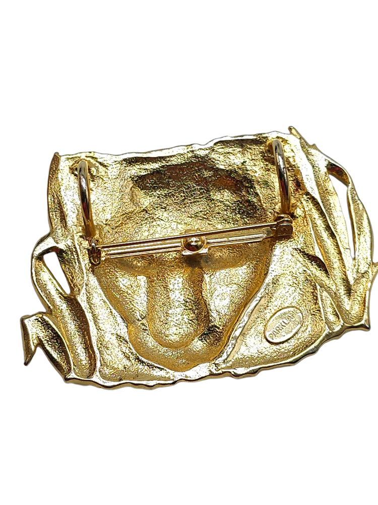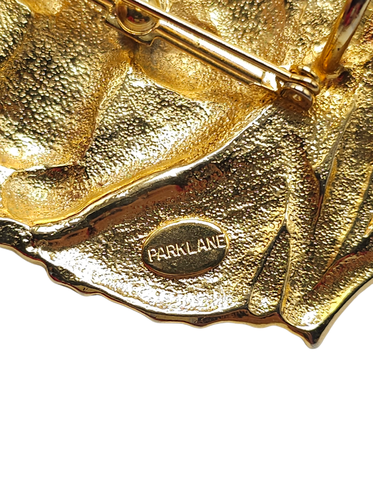 Large PARK LANE Tiger Brooch Matte Gold Plated Detailed Signed Vintage Jewelry Brand: Parklane Textured Jungle Reeds Leopard Face Brooch Pin Gold Tone Vintage Measurements: See Photos! Condition: Pre-Owned Good Gently Used - See All Pics for Condition - some wear see pics