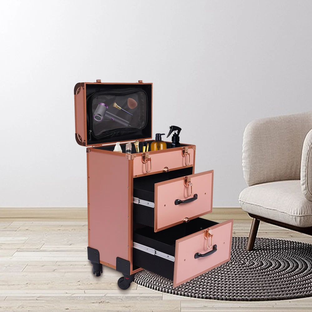 This rolling makeup case is a game-changer! The sturdy aluminum frame and spacious three-tier design make organizing cosmetics effortless. The smooth wheels and retractable handle ensure easy mobility, perfect for professionals on the go. Lightweight yet durable, it’s ideal for salons, travel, or home use. A must-have for beauty experts who need both style and functionality!