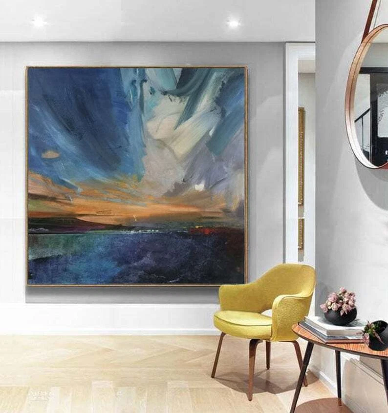 Large Sea Landscape Painting Blue Abstract Painting Landscape Painting Sky