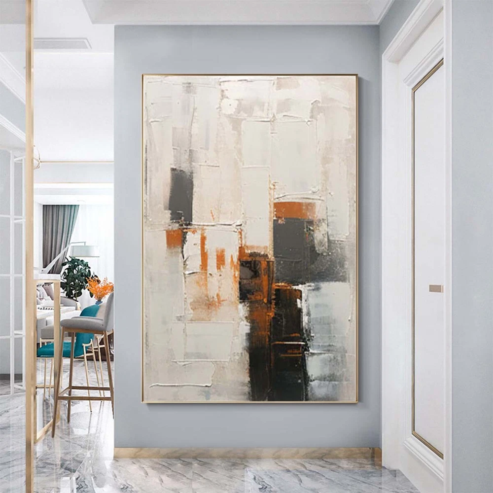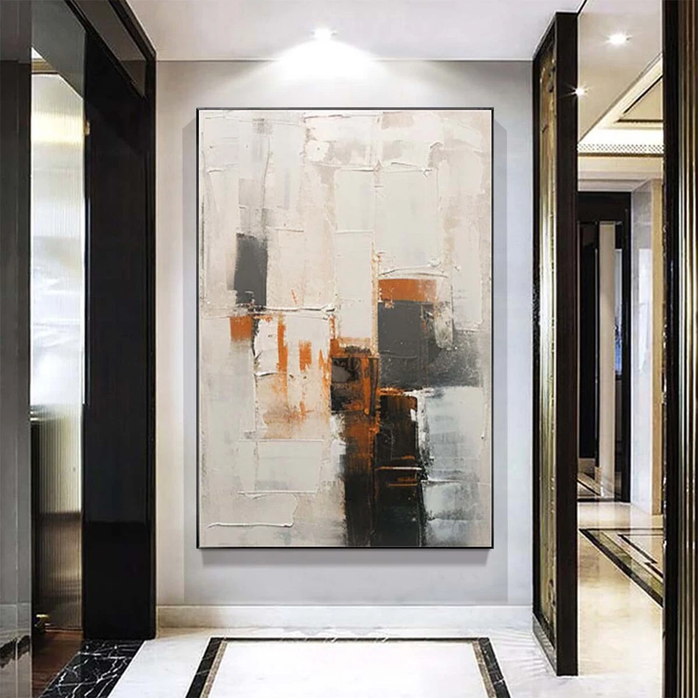 Large Wall Art Paintings Hand Painted Grey City Abstract Oil Painting On Canvas