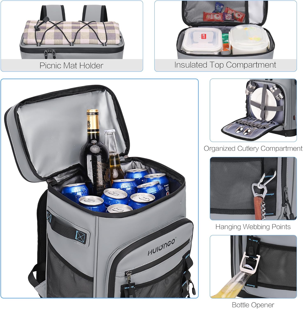 Backpack Cooler Insulated Leak Proof 33/49 Cans, 2 Insulated Compartments Therma