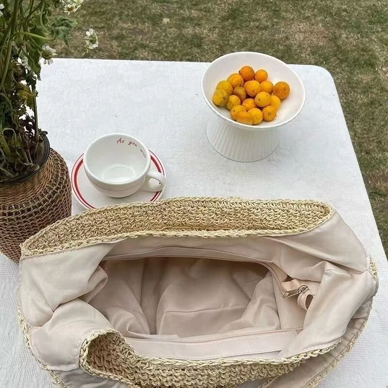 Feature: 1. Material: Made of high-quality woven fabric, it is not only soft, comfortable, durable, but also very easy to take care of. 2. Size: about 42x32cm/16.54x12.6in, which can easily accommodate your tablet, mobile phone, keys, wallet, lipstick, cosmetics and other items and accessories. 3. Structure: large pocket for storage and convenient carrying. 4. Gift: It is a good choice for shopping, holiday parties and travel street photography. Specifications: Shape: Casual Tote Main Material: woven Lining Material: Polyester Style: Fashion Closure Type: zipper Size: about 42x32cm/16.54x12.6in Color: Khaki, Beige Purpose: single shoulder, portable Note: 1. Due to the different monitor and light effect, the actual color of the item might be slightly different from the color showed on the pictures. Thank you! 2. Please allow 1-3cm measuring deviation due to manual measurement. Package includes: 1pc* bag