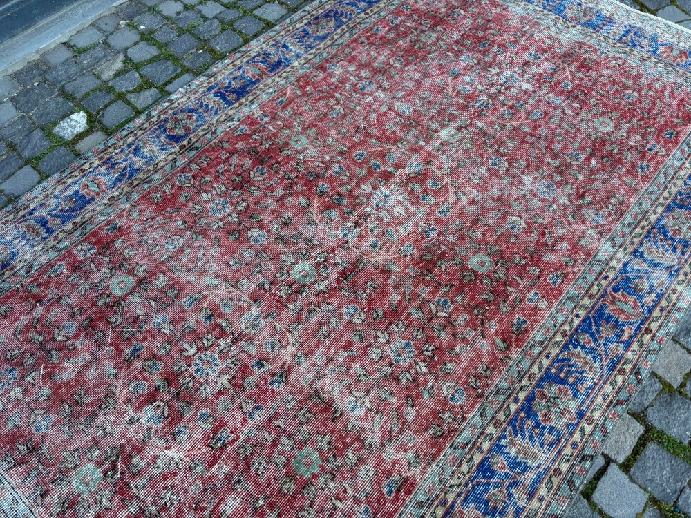 An old (approximately 45-60 years old) hand knotted / hand woven Turkish rug from the Middle Anatolian Region and made of genuine, high quality wool, in natural colors. Our distinguished Antiques and Vintage rugs, each with its own unique story, have been carefully selected from every corner of Turkey. RUG DETAILS * One-of-a-kind vintage rug * Dimensions: 5,3 x 8,7 ft = 64 x 105 inc = 163 x 266 cm * Low pile: approximately 0.2"(0.5 cm) * Dyed with natural dyes * Product code : LY 032 SHIPPING * Free shipping on all items. * Usually shipped via FedEx or UPS. * Item will be ready for shipment within * Estimated delivery 3-5 business days 1-3 business days with a tracking number. All of our rugs have been professionally cleaned and ready to ship before being listed. These unique vintage rugs have normal wear related to their age. We believe this adds to the authenticity of these hand-woven beauties. We inspect all rugs carefully before Shipping, but in the unlikely event that due to our fault, the goods are not fit for purpose, damaged/defective, or we ship the wrong item, we will issue a 100% refund. We are a team of experienced professionals who are dedicated to ensuring your items arrive safely. Please note that our photos accurately represent the colors of the rug, however it may look different in the light in your home or against different colored floors. We are so excited to share the beauty and art of rugs with you and to see how your personal spaces transform! I do my best to build a great experience in online rug shopping for you, just look at the reviews. Please feel free to write me over conversation if you have any questions about the rug or price. I will be happy to answer to you. Thank you, Yusuf.