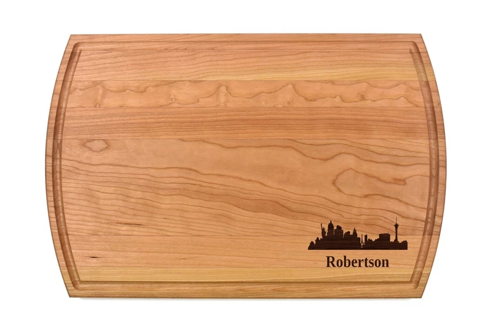 Design: Personalized Las Vegas Cutting Board or Charcuterie Serving Tray All items ship via USPS - please make sure your address is correct :-) Whether used as a charcuterie serving tray for snacks or cutting board, our bamboo, walnut and cherry custom boards are the perfect addition for the home and make the perfect gift for your loved one celebrating a birthday, anniversary, new home, wedding, etc! *** FEATURES *** • SIZES: We have multiple styles and sizes available. To see our current sizes available, click the drop-down menu. The photo slide contains a photo showing each side by side. Please note, the board with the juice groove only has the groove on the front side of the board. • THICKNESS: Bamboo Boards - Approximately 1/2" Thick; Walnut & Cherry Boards - Approximately 3/4” Thick • UNIQUE: Every board is unique with the grain and coloring varying throughout - no board is the same! • CARE INSTRUCTIONS: Hand wash only with warm water. Do not soak. Please apply mineral oil throughout the board’s life. • PERSONALIZATION/CUSTIMIZATION: Do you want the text placed differently on the board? Please don’t hesitate to contact us. All personalization notes can be entered in the personalization box when checking out. • SHIPPING: All cutting boards ship within 2 to 5 business days. • WHOLESALE ORDERS: Please don’t hesitate to contact us for information about wholesale orders. Processing times for larger orders may change. • NOTE: Colors can vary a bit on different monitors and screens. Any props included in photos are not included. Please be sure to double-check your address to make sure it is accurate for USPS delivery. If a package is returned to us due to an invalid address, the buyer is responsible for all additional shipping charges. We appreciate you supporting small business – best wishes! For items ordered with simple edits, we do not send proofs since the layout doesn't change from the example(s). However, in the event there are requests that change the layout from the example(s), we do send proofs for approval before making the product. If you'd like a proof before we make the product, please note so in the personalization box.