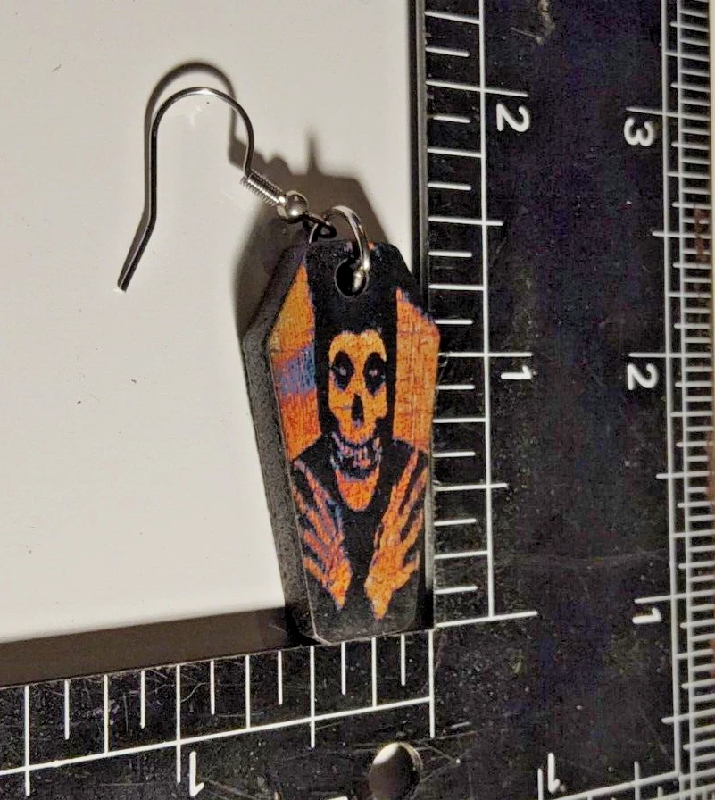 Laser engraved cut coffin misfits earrings hallowen custom punk horror fashion art goth metal rockabilly Based off a misfits crimson ghost design i made digitally. Then sent through laser machine. Made on plywood. From skull bead to bottom of earring measures 1.5"h x .75"w x 1/4"d. Loaded with hypoallergenic metal ear hooks. Check out plenty of other lasered creations of mine in shop. Order a few pieces and I'll give you a bundled art deal. Not doing customs at the moment but may be persuaded to fire up the laser for right project. Ebay reselling keeps me busy. Message me to find out. Thanks again for visiting my Ebay shop. ***Treasure Suite offers you many pieces of my art prints now*** ###This section is for laser cut sublimation prints of my digital art. Measurements vary by piece. ### *Welcome to my unique collection of digital art, where creativity meets craftsmanship! Each piece in this category features my original digital designs, heat pressed into vibrant sublimation prints on laser cut whiteboard material. Some are engraved then hand painted. These art pieces are not just decorations, they are collectibles that bring a touch of gothic, rock and roll, horror, pin-up, and lowbrow art into your space. *perfect for:* *man cave *castle *bungalow *abode *domicile *penthouse *flat *cabin *studio *boutique hotel *yacht *etc *These pieces make fantastic gifts for art enthusiasts and collectors alike. Who doesn't enjoy vibrant digital art of out of this world space huntresses, demon witches, cyberpunk vixen cyborgs, spooky mistresses, hearses, hotrods, and so on? ***May consider custom orders of laser cut or engraved items.***