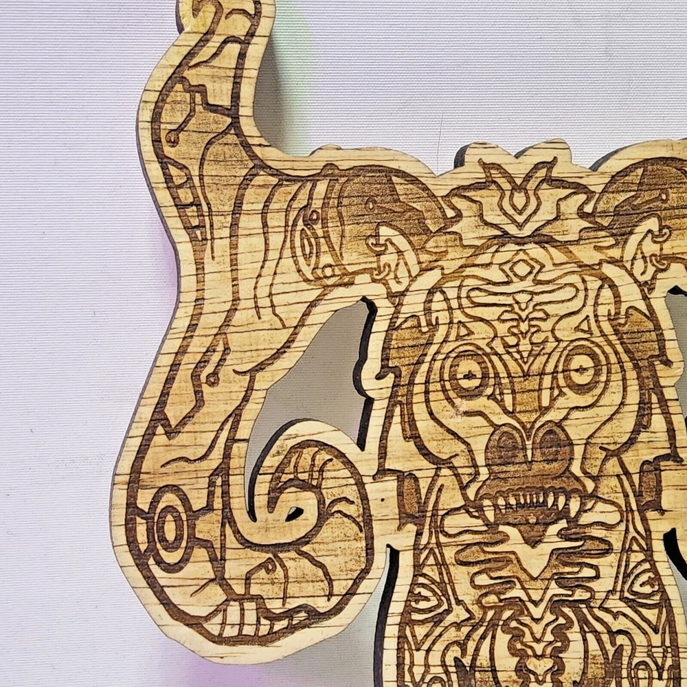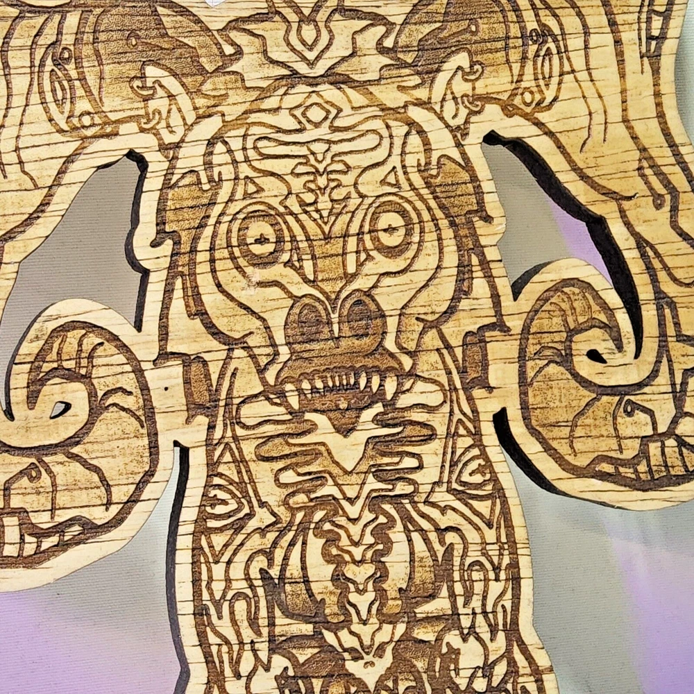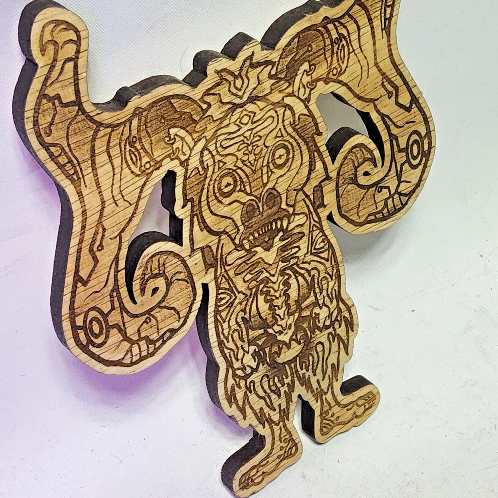 Laser engraved cut wooden creature antlers digital art print mystical cryptid 6x8 bendy board Quite a bit of work goes into making my laser cut/engraved art. I come up with most of art/shapes,draw them out,edit colors,sizes, transfer files to multiple formats,paint,assemble,etc. Lots of steps to get some fine off the wall pieces. From tablet,to you. Can give bundle deal for multiple pieces. Not entertaining custom pieces at this moment. ***Treasure Suite offers you many pieces of my art prints now*** ###This section is for laser cut sublimation prints of my digital art. Measurements vary by piece. ### *Welcome to my unique collection of digital art, where creativity meets craftsmanship! Each piece in this category features my original digital designs, heat pressed into vibrant sublimation prints on laser cut whiteboard material. Some are engraved then hand painted. These art pieces are not just decorations, they are collectibles that bring a touch of gothic, rock and roll, horror, pin-up, and lowbrow art into your space. *perfect for:* *man cave *castle *bungalow *abode *domicile *penthouse *flat *cabin *studio *boutique hotel *yacht *etc *These pieces make fantastic gifts for art enthusiasts and collectors alike. Who doesn't enjoy vibrant digital art of out of this world space huntresses, demon witches, cyberpunk vixen cyborgs, spooky mistresses, hearses, hotrods, and so on? ***May consider custom orders of laser cut or engraved items.***