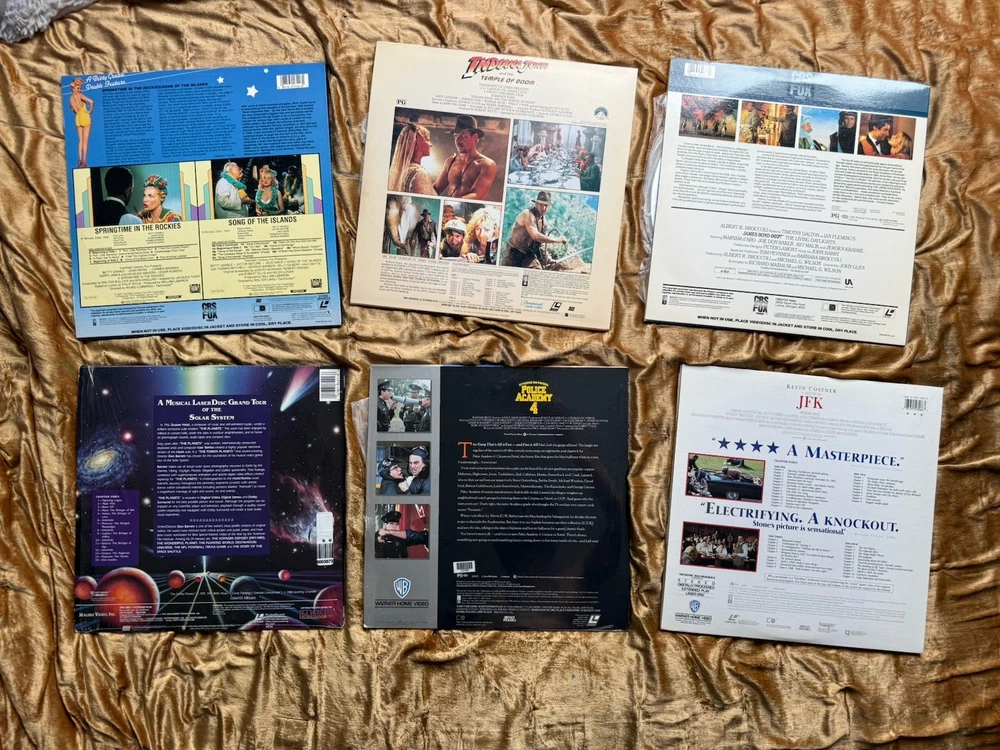 🎥 LaserDisc Mega Bundle – Top Gun, Bond, JFK, Dirty Dancing, Indiana Jones ++ 🚀 Huge LaserDisc Collection – Top Gun, Bond Classics, Dirty Dancing & More! Get ready to own a rare and cinematic LaserDisc collection that spans action, romance, sci-fi, and cult classics! 📀 Whether you’re a vintage videophile or nostalgic collector, this one-time lot offers iconic films and elusive titles all in great condition. 🎬 Bundle Features (28 total LaserDiscs): • Top Gun – Tom Cruise / Kelly McGillis (Paramount) • James Bond 007 – The Living Daylights (Stereo EP) • James Bond 007 – Moonraker (Stereo EP) • Indiana Jones and the Temple of Doom (Paramount) • Dirty Dancing – Patrick Swayze • Running Scared – Gregory Hines & Billy Crystal • JFK – Kevin Costner, directed by Oliver Stone • Starship: Knee-Deep in the Hoopla • Underwater – Jane Russell (Howard Hughes production, Technicolor) • Blue Angels: Rolling in the Sky (FA-18 footage) • Springtime in the Rockies + Song of the Islands (Betty Grable double feature, Stereo EP) • Police Academy 4: Citizens on Patrol • DragenT, Los Angeles Police 714 – Dan Aykroyd & Tom Hanks • Playboy Video Collector’s Edition Vol. 3 • The Planets (Malibu Video) • UFOs: Are We Alone – Nova documentary • Mr. Mister: Welcome to the Real World • Berkey and Wills – Jack Thompson, Nigel Havers, Greta Scacchi 📦 Condition: • Most LaserDiscs are complete with sleeves and inserts. • Tested and play perfectly, with clean, cinematic sound and video playback. • Generally excellent to good condition—some case wear from age, but discs are solid. 🎯 Perfect For: ✔️ LaserDisc collectors ✔️ 80s–90s movie enthusiasts ✔️ Retro AV setups & home theater nostalgia ✔️ Bond, Indiana Jones, Dirty Dancing, JFK fans ✔️ Criterion-style collectors & vintage format lovers 💡 Imagine popping in Top Gun or The Living Daylights on your vintage LaserDisc setup—and hearing that rich analog soundtrack. Relive the magic of full-frame movies and pure home theater nostalgia. These aren’t streaming files—they’re pieces of film history. 💌 I’m open to offers — send me yours and let’s make a deal you’d feel great about!