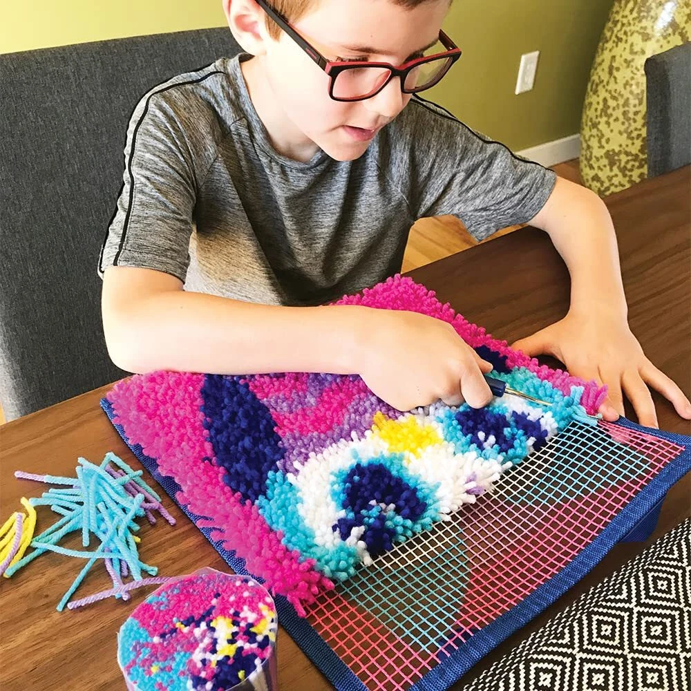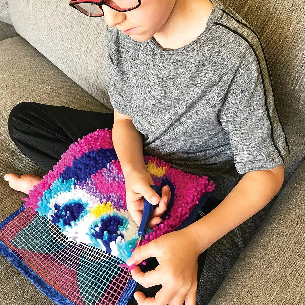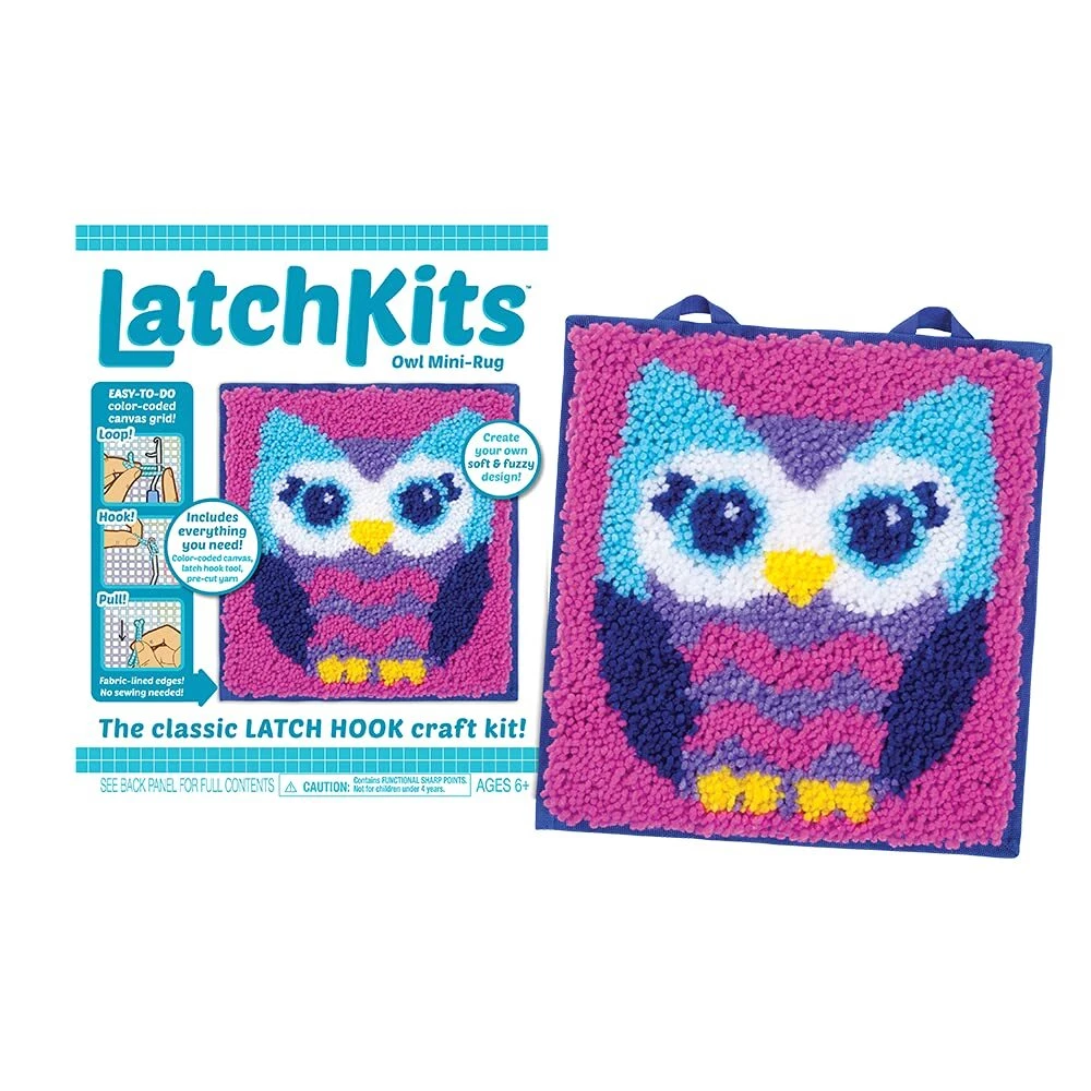 The classic latch hook craft kit is back! LatchKits are a fun and easy-to-learn craft—just loop, hook, and pull! Everything you need is included: the handy latch hook tool, pre-cut yarn and color-coded, easy-to-follow canvas make getting started on your project a snap. The sturdy canvas features fabric-lined edges and hanging loops to create your very own soft and fuzzy design that’s ready to hang on your wall or use as a mini-rug—it’s a great anytime project! CRAFTY FUN – Make an adorable Owl to hang on the wall or use as a mini rug! EASY-TO-LEARN – It’s as simple as loop, hook, pull! NO SEWING OR CUTTING – Everything comes exactly as needed for use without any extra sewing or cutting. FLUFFY, SOFT DESIGN—Multi-length, colorful yarn makes a beautiful mini rug INCLUDES EVERYTHING TO MAKE YOUR OWN MINI-MASTERPIECE – Each LatchKit comes with illustrated instructions, the handy latch hook tool, pre-cut yarn, and color-coded canvas.