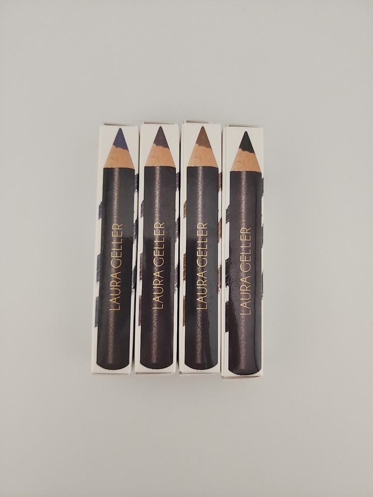 New Laura Geller Powder Pencil Eyeshadow & Liner Make Up (choose Shade). The Laura Geller Powder Pencil Shadow & Liner 4-Pc Collection is a versatile eye makeup set designed to simplify your beauty routine. This collection features four dual-ended pencils that can be used as both eyeshadows and eyeliners, offering a range of matte and shimmer finishes. Each pencil is formulated to glide on smoothly, providing rich color payoff that lasts throughout the day.