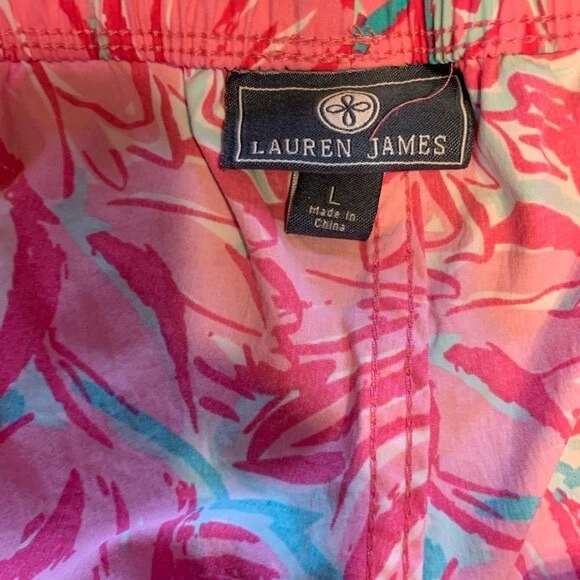 Lauren James Pink Floral Tulip Swim Shorts Pocket Water Nylon large