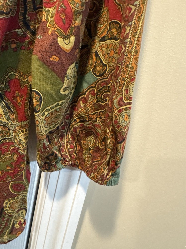 $ 15.84Floral Colorful Abstract Pullover Boho Mock Neck Size XL Blouse Ruffled Smocked