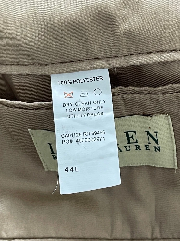 Thank you for your interest in this great looking Lauren Ralph Lauren Sport Coat! We do our best to provide the most accurate description so you know exactly what you’re buying. If there’s something we missed or you decide this piece just isn’t right for you, you’re welcome to return it within 30 days of delivery no questions asked. Every purchase supports small business and will be handled with care, all orders ship within one business day and often the same day! Size: Men's 42L Fit: Regular Fit Material: Polyester Color: Brown Condition: Excellent pre-owned condition, no tears, stains or strange odors Armpit to armpit - 23" Top to bottom length - 33" Shoulder seam to cuff - 25 *All clothing items have been properly cleaned per eBay standards