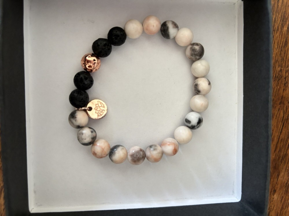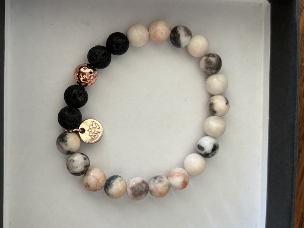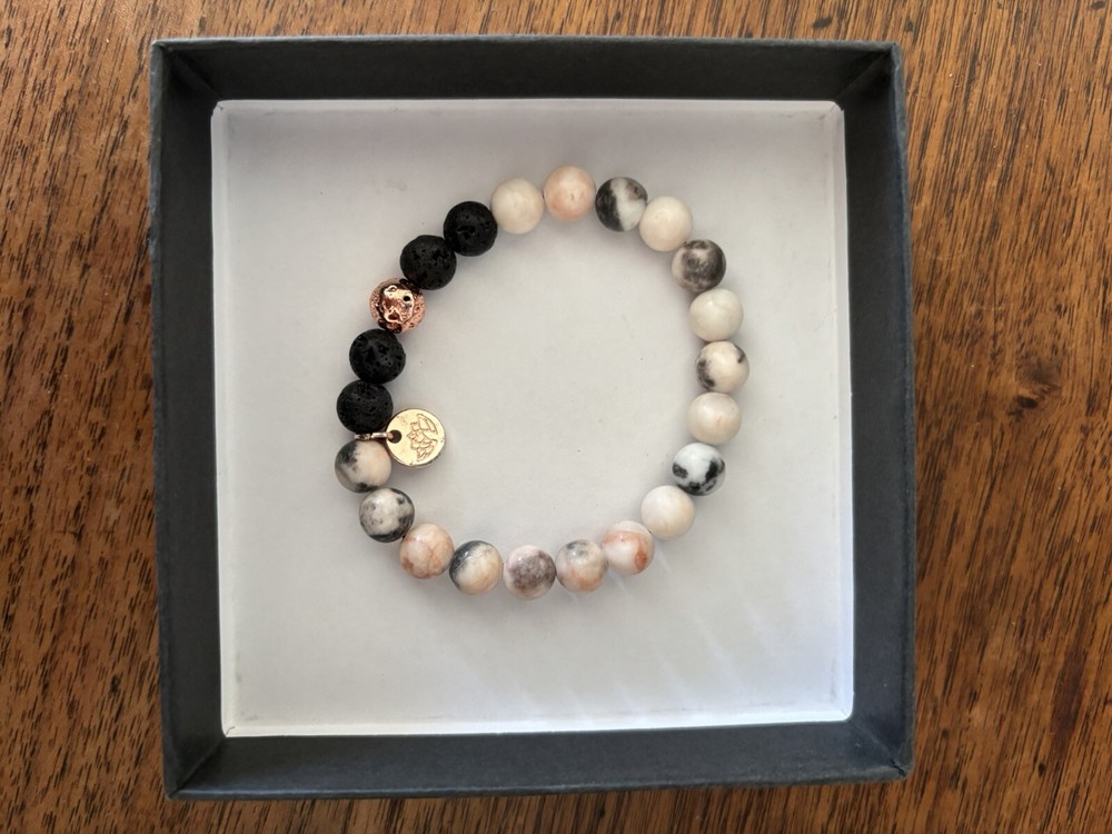 Lovely Relaxation gift Lava Rock Bracelet Beads with Calming Essential Oil.brand new in box although box is very slightly shopworn- please see pictures. Perfect gift for Valentine’s Day!!