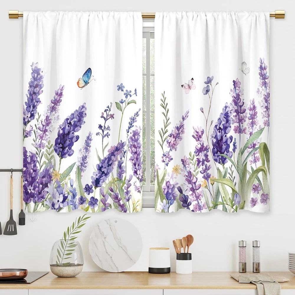 Farmhouse Chic: Add rustic charm to your kitchen with these rustic farm kitchen curtains The vintage printed design featuring purple flower adds a touch of country style to any space. Perfect Size: Each set includes 2 panels measuring 27.5" wide x 39" long, making them ideal for small windows or to style in a cafe-like manner. The rod pocket design ensures easy installation and a neat, tailored look. Light Filtering��The small curtains have just the right thickness to let in some light and also provide privacy. They will block a sun reflection, but not all of the light. You can cover the lower portion of your windows to provide privacy or used alone on shorter length windows, a great highlights to the kitchen. Washing Care: Machine wash cold, not fade, gentle cycle, with similar colors, tumble dry low, cool iron if needed, easy care curtains could save your times. After-sale Service: You have no risk to try and we will provide you the best service! We stick to pay attention to product quality, if there''s any quality problems please contact us.