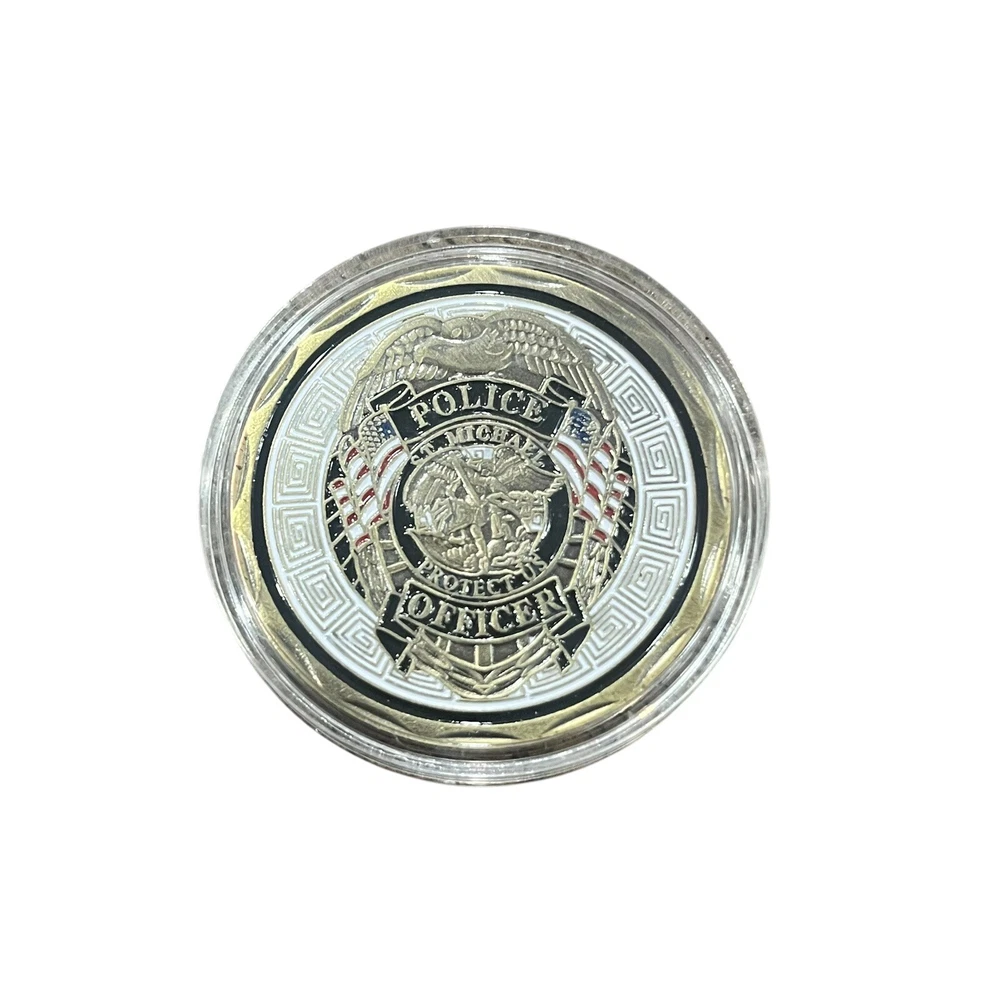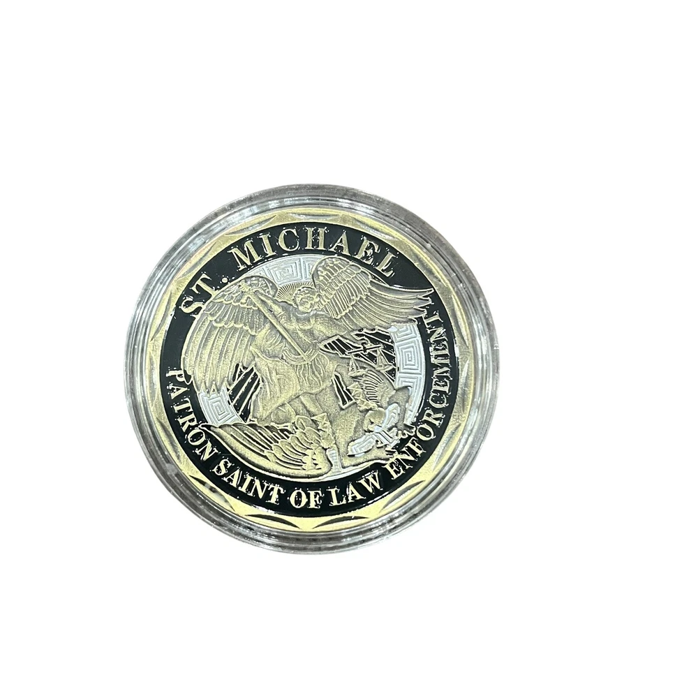 Law Enforcement Police St. Michael Patron Saint Challenge Coin -Protective Case