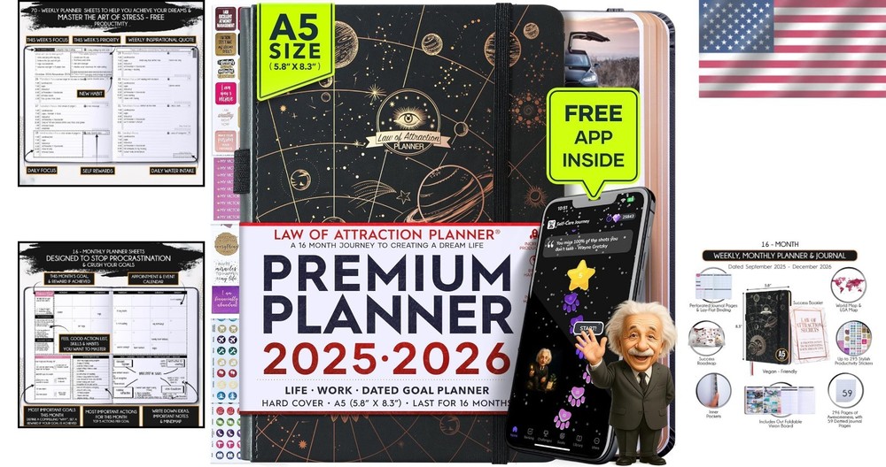 Law of Attraction Planner 2025-2026 | Delightful A5 Life Organizer with Stickers ‹ › ‹ › ‹ › ‹ › ‹ › ‹ › ‹ › ‹ › ‹ › Law of Attraction Planner 2025-2026 Delightful A5 Life Organizer with Stickers Features: Size: A5 (5.8 x 8.3 inches) with 296 pages of life transformation. Includes 70 weekly and 16 monthly planning overviews, reflection pages, and 59 dotted journal pages. Thick 100 gsm paper ensures a writing experience. Foldable vision board to help bring your dreams to life. Designed with morning & evening routines, habit trackers, and mind maps. Covers the entire period from September 2025 to December 2026. Includes stickers to enhance your planning experience. Benefits: Increased productivity and happiness through structured planning. Master the art of goal setting, following proven methods used by millionaires. Reduces overwhelm and stress with a unique 8-step productivity system. Transforms vague aspirations into concrete actions and results. Perfect for entrepreneurs, professionals, college students, or anyone with a desire to manifest their dreams. Why Choose the Law of Attraction Planner? Ready to create the life you’ve always desired? The Law of Attraction Planner is not just a calendar; it is a comprehensive tool for manifesting your dreams and achieving your goals. With guided exercises and structured layouts, this planner is meticulously crafted to help you break free from procrastination, anxiety, and stress. This luxurious planner is your personal guide, blending the principles of the Law of Attraction with practical planning strategies. Whether it's a daily planner, a gratitude journal, or a goal-setting tool, it is designed to help you flourish in every aspect of life with clarity and purpose. Join countless others who have turned their aspirations into reality with the Law of Attraction Planner 2025-2026. Experience the transformative power today and unlock your potential! Shipping Free & Fast Shipping - We offer free shipping to most of the USA with a normal delivery time of 3-7 days. However, due to the current situation, additional delivery time (up to 3 weeks) may be required for some items. Alternative Carriers - We may use alternative carriers (e.g. USPS, FedEx, UPS, etc.) to ensure your package arrives safely and on time. Due to the use of multiple carriers, we are unable to provide a tracking number automatically. Handling Time - Orders are processed and shipped within 1-2 business days of receiving cleared payment. Shipping Restrictions - Shipping to Alaska, Hawaii, Puerto Rico, Guam, and other US territories may incur shipping charges or delivery restrictions. Please contact us before ordering, or your order can be refunded/cancelled. State Restrictions - There may be restrictions based on your state of purchase. For example, certain items may not be shipped to California due to state regulations. Contact for Tracking Updates - If you require tracking updates or have any concerns about the delivery of your order, please feel free to contact us, and we will be happy to assist you. Return 30-Day Hassle-Free Returns - We want you to be completely satisfied with your purchase. If you are not, you can return the item within 30 days of receiving it for a full refund or exchange. Easy Return Process - To start a return, simply contact us and we will provide you with a prepaid return shipping label and detailed instructions. Restocking Fee - There are no restocking fees for returns. However, the buyer is responsible for return shipping costs if the return is not due to a seller's error. Refund Processing Time - Refunds will be processed within 5 business days of receiving the returned item in its condition. Payment We accept all major credit cards, PayPal, and Apple Pay for your convenience. Your payment information is secure and encrypted to ensure a safe and seamless transaction. Please complete your payment within 3 days of purchase to avoid any delays in shipping. Feedback Your feedback is extremely important to us. We strive to provide the best products and customer service possible. If you are satisfied with your purchase, please take a moment to leave us a positive review. If you have any concerns or issues with your order, please contact us before leaving negative feedback. We are committed to resolving any problems and ensuring your satisfaction. Contact Us If you have any questions or concerns, please feel free to out to our customer support team. You can contact us through the eBay messaging system. We are available Monday to Friday, 9:00 am to 5:00 pm EST, and we will do our best to respond to your inquiry within 24 hours. Buy it now and enjoy a pleasant shopping experience! Model: 2025-2026 Planner MPN: 2025-2026_Planner Unit Quantity: 0.83 kg Type: Planner Calendar : 2026 Format: Weekly/Monthly Material: Paper Size: A5