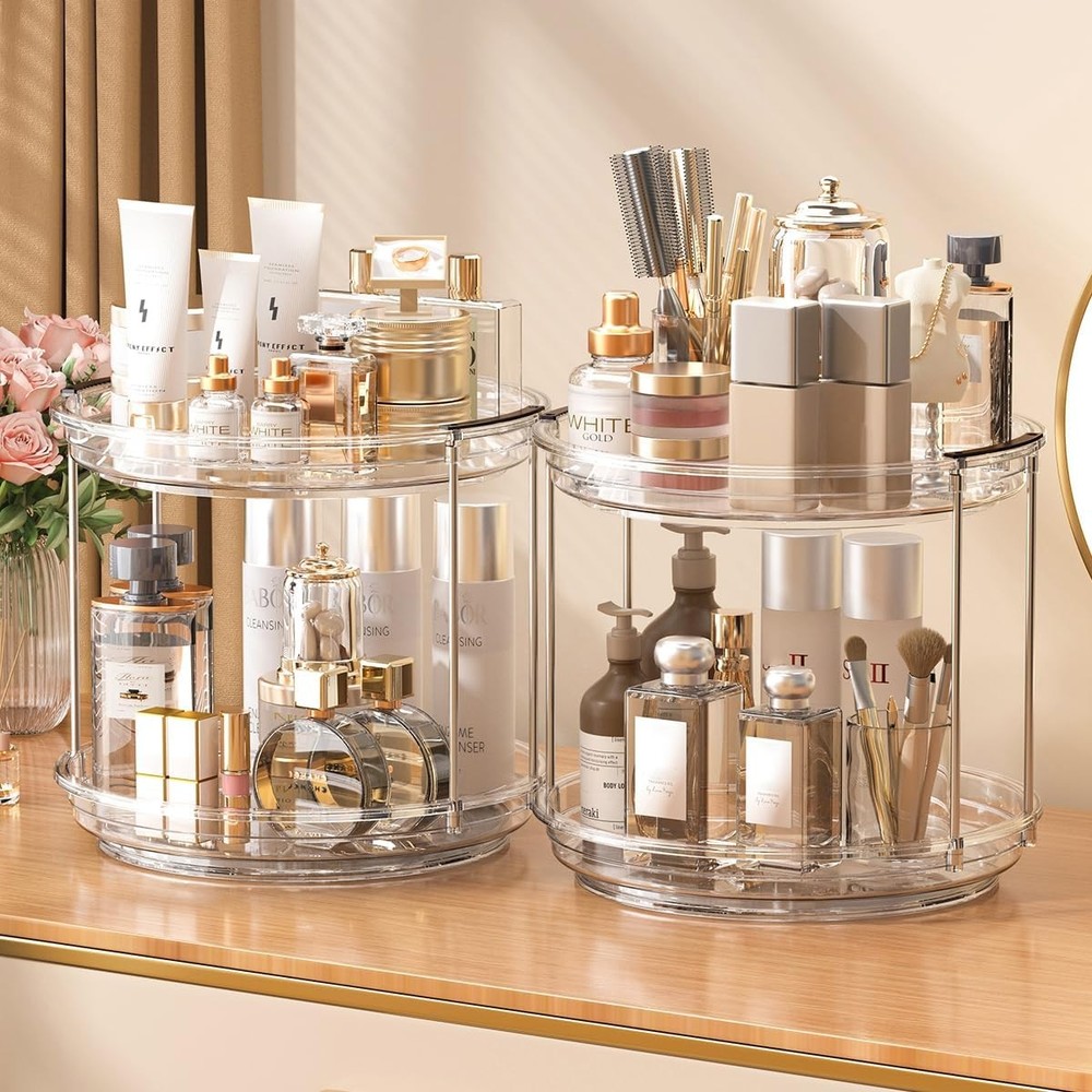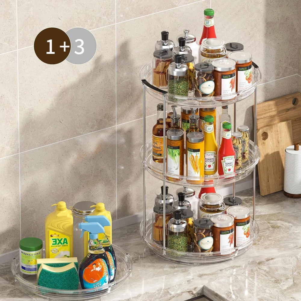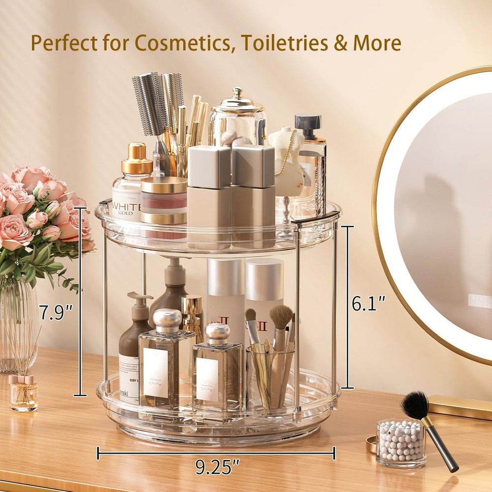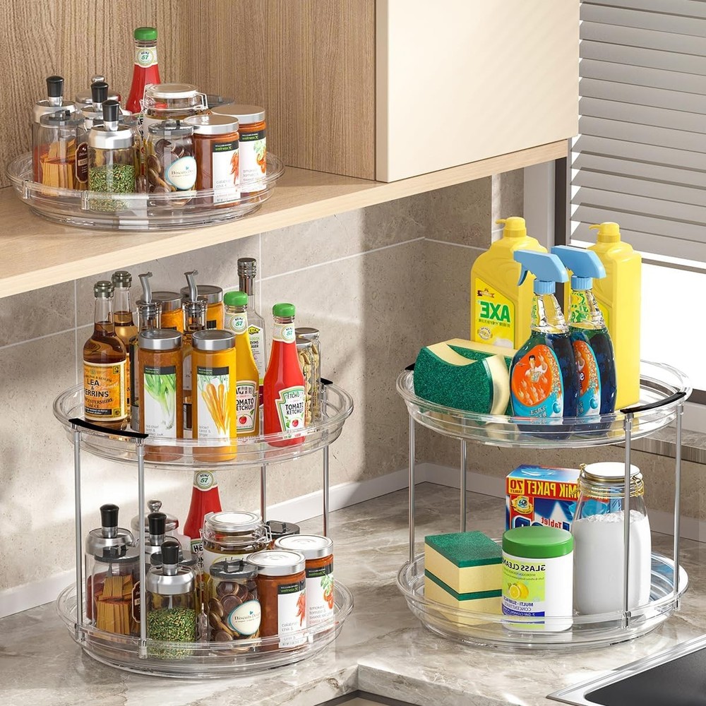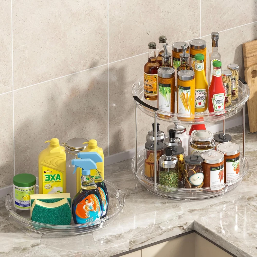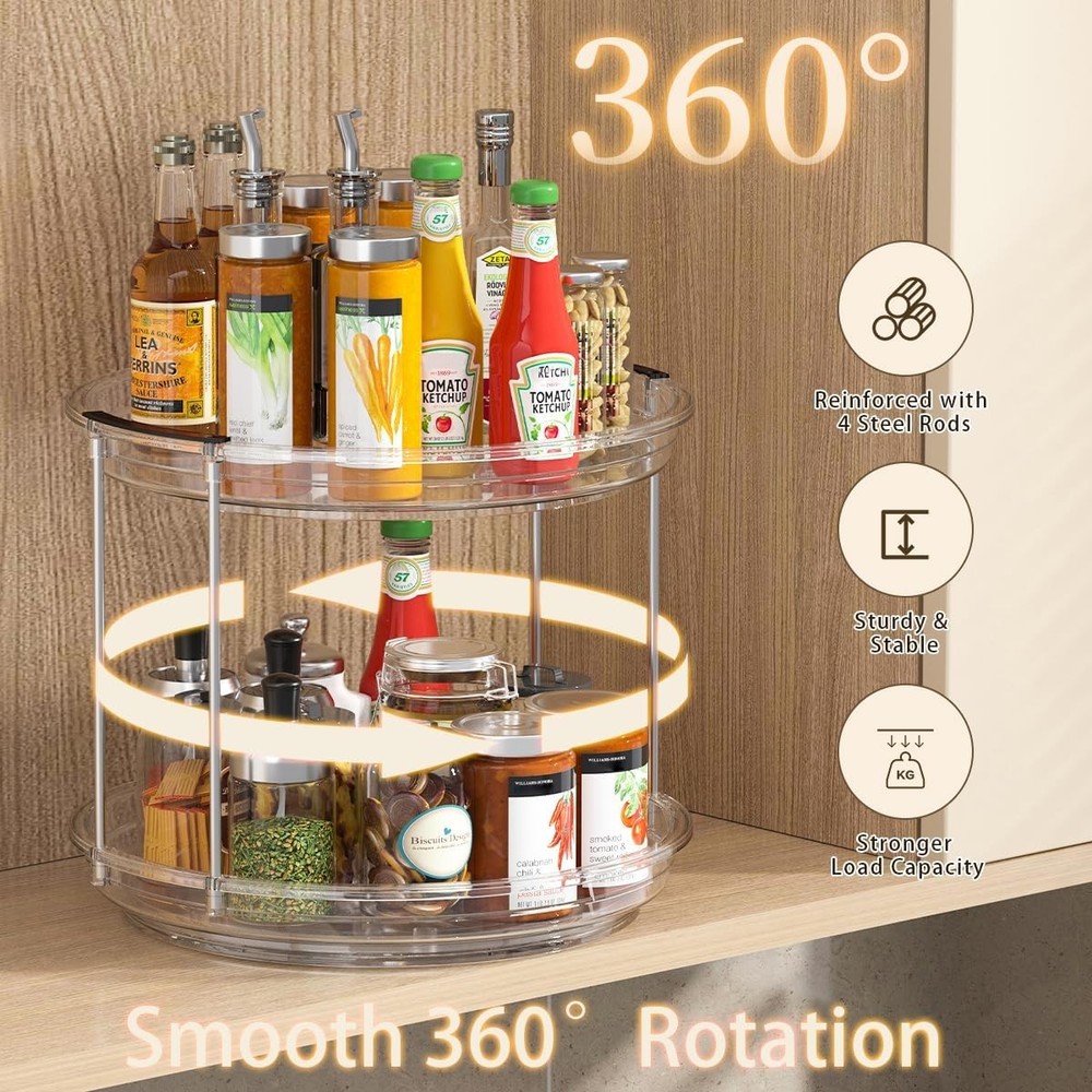 Free eBay listing template designed by dewiso.com Lazy Susan 2 Tier Organizer Turntable Organization for Cabinet, Rotating Spice Rack Kitchen,Pantry, Bathroom,Makeup Vanity Countertop, Under Sink Organizing(Clear, 9.25in-1Pack) FREE AND FAST SHIPPING! About this item Space-Saving Double Tier – Designed with two levels, this Lazy Susan maximizes vertical storage without taking up extra horizontal space. Perfect for narrow cabinets or countertops, it helps you organize more items in compact areas. Stack & Expand Freely – Use it as a 2-tier organizer or stack two sets to build a 3-tier solution. Ideal for spices, seasonings, cans, beverages, medicine, makeup, perfumes, or toiletries across kitchen, pantry, fridge, bathroom, or vanity. Reinforced with Metal Rods – Unlike ordinary plastic spice racks, KEGFRES uses durable stainless steel rods to connect both tiers, ensuring a sturdy, wobble-free structure that supports heavy jars and bottles with ease. Small Footprint, Large Capacity – Measuring 9.25" in diameter and 7.9" in height, this compact Lazy Susan provides ample room for spices, condiments, snacks, cosmetics, or medicine while fitting neatly into limited spaces. 360° Smooth Reach – Equipped with premium ball bearings, the turntable spins smoothly in any direction, giving you effortless access to every item. The raised 1-inch edge keeps jars and bottles secure during rotation. EASY ASSEMBLY AND CLEAN: No tools are required for assembly and removal. Our rotating spice rack organizer is Made of high-quality plastic, and easy to clean—clean it with water Product We offer a 30-Day Return Policy on items which you are not completely satisfied with. You have the option for a full-refund or an exchange of the item. No returns are available on items shipped outside of the US . Shipping We offer Free Shipping to the US and ship within 2 business days of payment, usually sooner. We use UPS express shipping. That's why your products are usually delivered within 3 days . Contact We try our very best to make sure every customer is completely satisfied. If there's a problem , message us! We're happy to help. 24/7 live chat available.