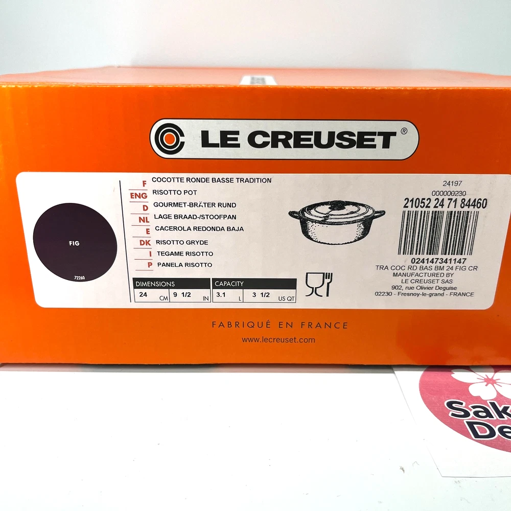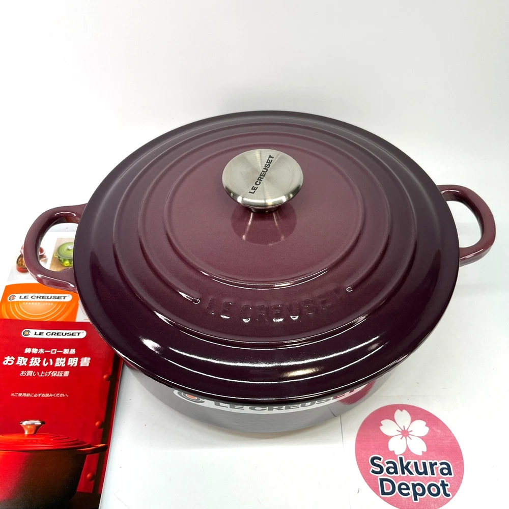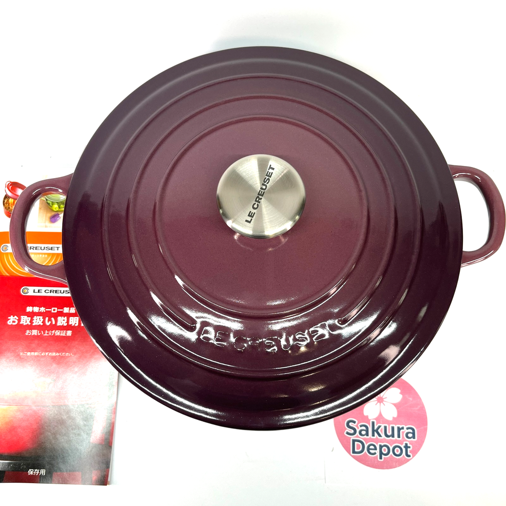 Le Creuset Cocotte Japonaise SUKIYAKI Cast Iron Pot 24cm Fig Silver Knob JPN New Description About This Items Le Creuset Signature Cocotte Japonaise Cast Iron Enamel Pot, 24 cm, Fig This slightly shallow pot is perfect for Japanese cuisine. Of course, it's also great for Western dishes like risotto. At approximately 8 cm deep, it's convenient for sukiyaki, hot pots, and simmered fish. With the dedicated steamer (sold separately), you can easily enjoy steamed dishes. Le Creuset was born in France. With its high quality cultivated over many years and its superior functionality chosen by chefs worldwide, this is a masterpiece of cast iron enamelware beloved by generations in over 70 countries. ■Cast iron enamel's excellent heat conductivity ensures even heat distribution, ensuring delicious cooking even when simmering or frying, preserving the flavor and nutrients of your food. ■It's suitable for all cooking methods: simmering, cooking rice, steaming, baking, stir-frying, and deep-frying. ■Cooking over low heat is possible, making it economical and excellent at retaining heat. ■Excellent heat retention means food stays warm when served. ■With years of enamel coating technology, we've not only developed beautiful colors, but also pursued durability and ease of use. Resistant to odors and stains. Important Manufacturing Note Please note that each piece is individually crafted by artisans, so variations such as color unevenness, color loss, small air bubbles, black or white spots, unevenness, pinholes, and decal misalignment may occur. Additionally, individual pieces may vary in size, weight, texture, and color intensity. Brand: Le Creuset Color: Fig (Purple) Material: Enamel Cast Iron Finish: Enamel [Size] Diameter: 24 cm (approx. 32 cm including handles) Height: 13 cm (including lid) Depth: 8 cm Capacity: 3.3 L Weight: 3.9 kg Material: * Body: Cast iron enamel Knob: Stainless steel (Silver color) Country of origin: France Compatible heat sources: Gas, IH (Induction), Oven, Ceramic, Electric Replace your old handles with these stainless steel copper knobs to decorate your Le Creuset cookware. The knobs feature the Le Creuset logo and stay cool during stovetop cooking, with no temperature restrictions like Fesneau knobs. These knobs are screwed on, making them easy to replace your old ones. This L size fits 4- to 15-quart Le Creuset braisers and Dutch ovens. These knobs are conveniently dishwasher safe. Replace your old handles with these stainless steel copper knobs to decorate your Le Creuset cookware. The knobs feature the Le Creuset logo and stay cool during stovetop cooking, with no temperature restrictions like Fesneau knobs. These knobs are screwed on, making them easy to replace your old ones. This L size fits 4- to 15-quart Le Creuset braisers and Dutch ovens. These knobs are conveniently dishwasher safe. Appearance New Condition New Included Items No accessories Returns Returns are accepted ONLY if the item was not the item described. Shipping Your item will be shipped promptly with expedited shipping and tracking via FedEx, DHL, UPS or JapanPost. Shipping is only available to the address registered in eBay. If you want us to send another address, please change your address on eBay and then place an order. Shipping is available from Monday to Friday. Weekends are not available because freight (shipping) companies are closed. **Remote Area Delivery** If the delivery address is located in a remote area, FedEx , DHL or UPS may charge an additional fee. In such cases, you may be asked to pay an extra $20-$30. Thank you for your understanding. We do not mark merchandise values below value or mark items as * gifts * - Japan, US and International government regulations prohibit such behavior. About us If you're satisfied with the item, we'd greatly appreciate your positive feedback. If there are any issues, please contact us before leaving feedback, and we'll address the problem sincerely and promptly. About Importer's Obligation **For U.S. Buyers** Import duties are already included in the item price and shipping cost. You will not need to pay any additional customs duties. Please purchase with confidence. **For Buyers Outside the U.S.** Import duties and taxes are **not** included in the item price or shipping cost.Please check with your country's customs office to determine what these additional costs will be prior to bidding or buying. However, please note that the item price already reflects the U.S. import duties. If you would like to discuss the price, feel free to send us an **Offer** or**Message**.