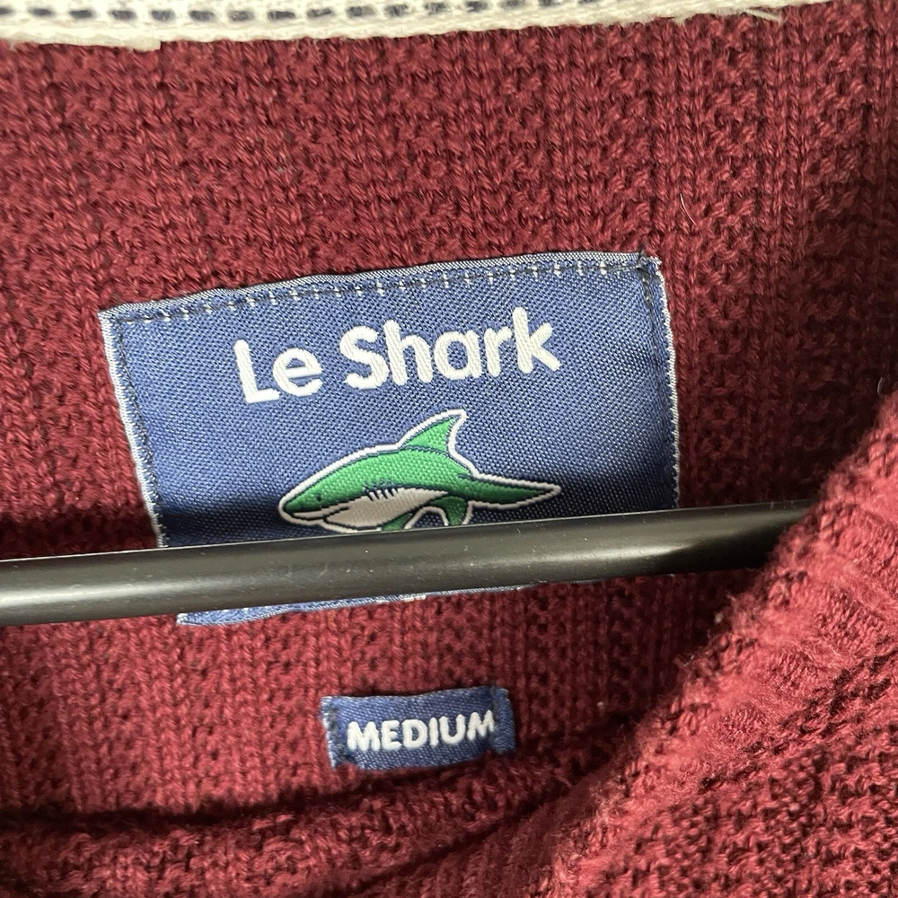 Le Shark Crew Neck Jumper Knit Pullover Sweater Burgundy Mens Size M Le Shark Crew Neck Jumper Knit Pullover Sweatshirt Navy Long Sleeve Condition - 9/10 Tag Size - Mens M Actual Measurements - Pit to Pit 21” - Top to Bottom 26.5” Flaws - Shipping - Royal Mail Tracked 48 Please Message For Anymore Details Items Are Vintage Or Preloved And May Have Slight Signs Of Wear Or Use