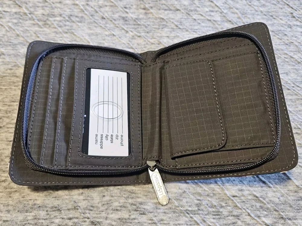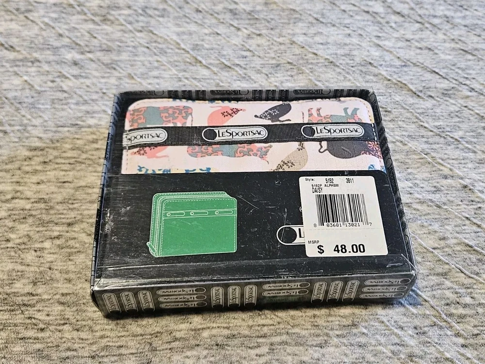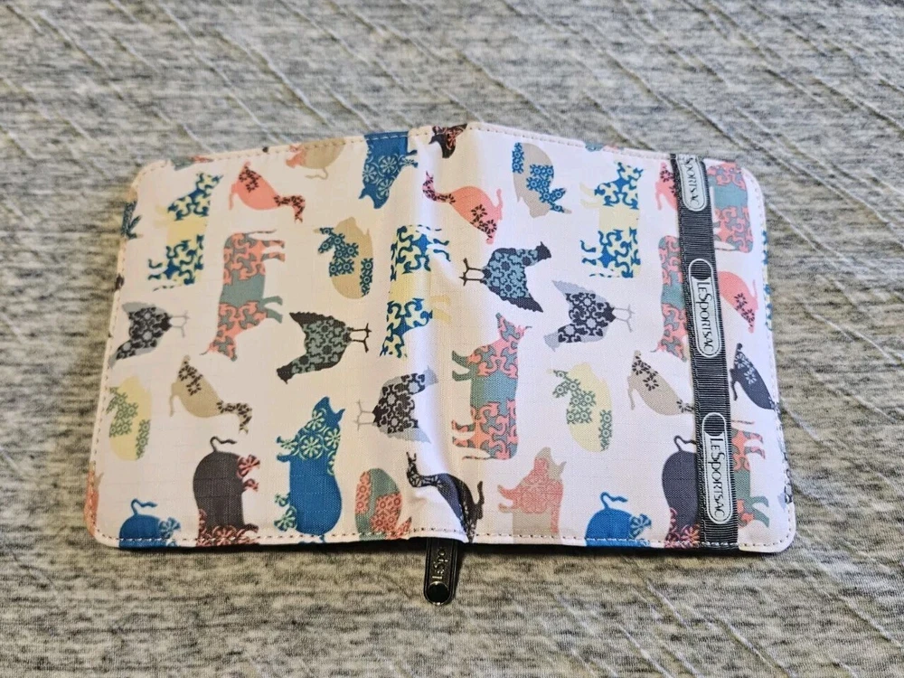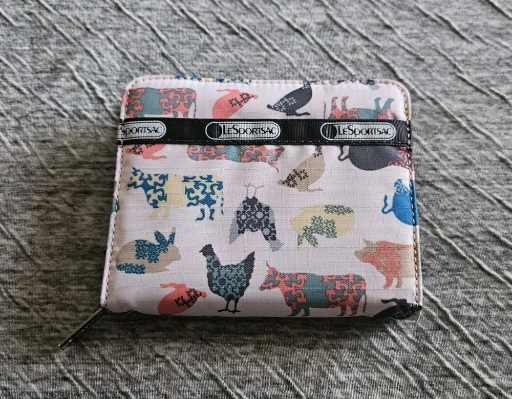 Le Sportsac Farm Animal Print Pink Bi Fold Zipper Wallet. Measurements: 4.5 x 5.25 x 1"